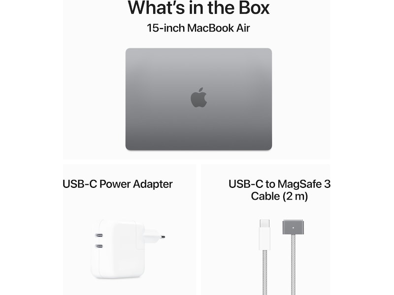 | Inkluderet tilbehør | USB-C til MagSafe 3 opladningskabel (2 m), USB-C dobbeltport kompakt strømadapter |