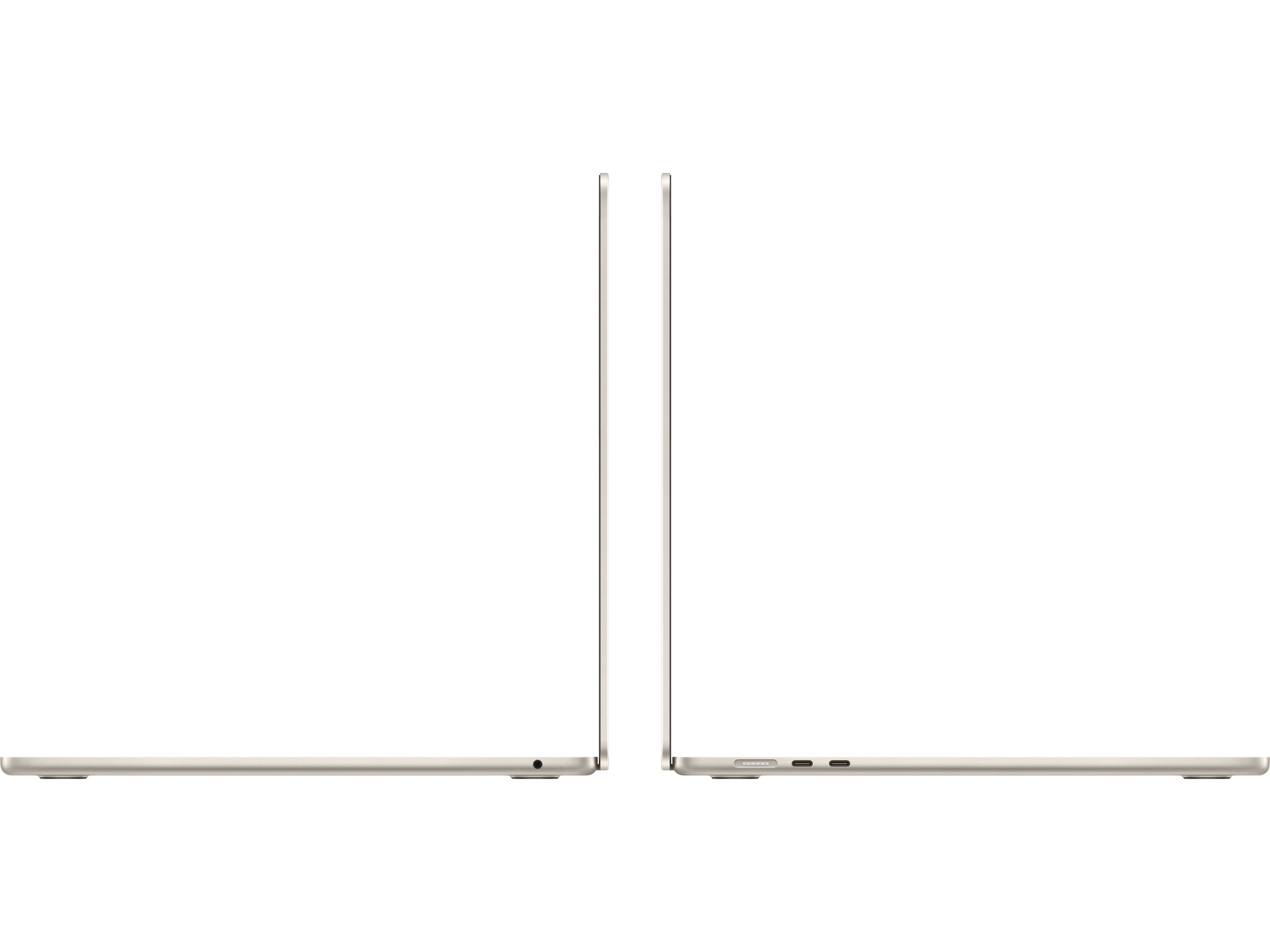 - FULDSTÆNDIG TILSLUTET – MacBook Air har to Thunderbolt-porte, et hovedtelefonstik, wifi 6E,(4) Bluetooth 5.3 og en MagSafe-opladningsport. Tilslut op til to eksterne skærme med maskinen lukket.