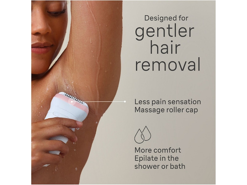 Effektiv: Det brede hoved fjerner mere hår (sammenlignet med Braun Silk-épil 5) i ét strøg. Epilatoren fanger korte hår (0,5 mm) op, som voks ikke kan.