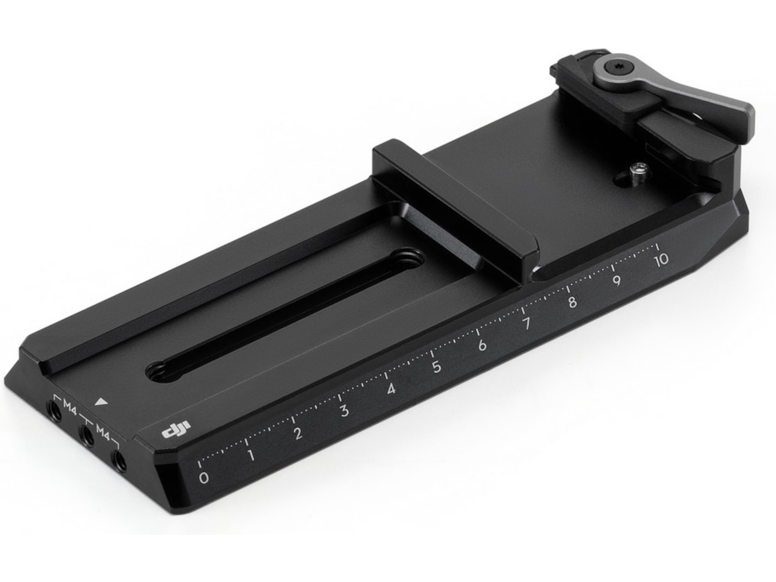 Den nederste quick release-plade har en skala på begge sider og et takket rilledesign i bunden. Dette komplementerer finjusteringsknappen på kardans vippeakse, hvilket gør det muligt for filmfotografer at foretage præcise justeringer på millimeterniveau, når de skifter kameraer eller objektiver. Det letter også en hurtig overgang mellem stativer og stabilisatorer til kameraet.