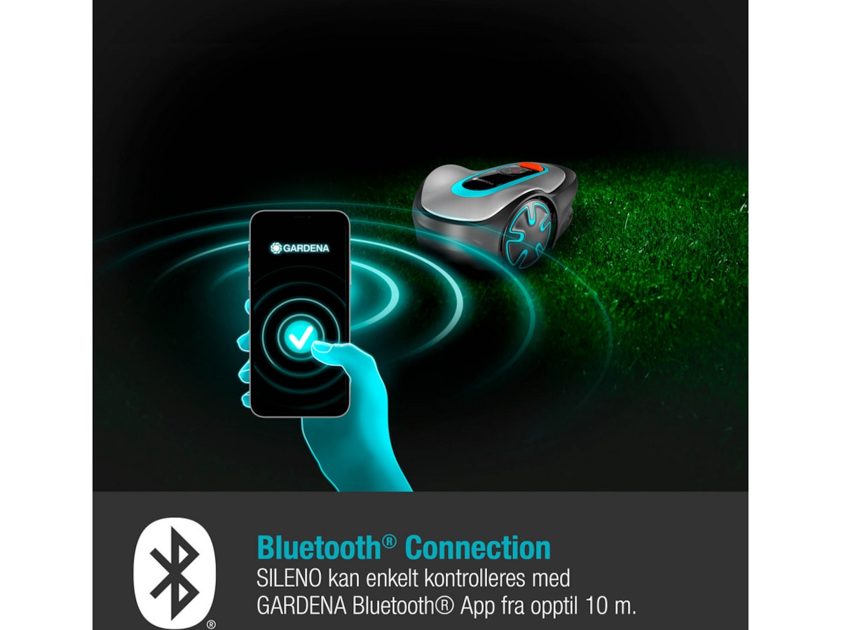 SILENO minimo kan styres fra op til 10 m afstand, og samspillet mellem robotplæneklipperen og GARDENA Bluetooth-appen optimerer havearbejdet.