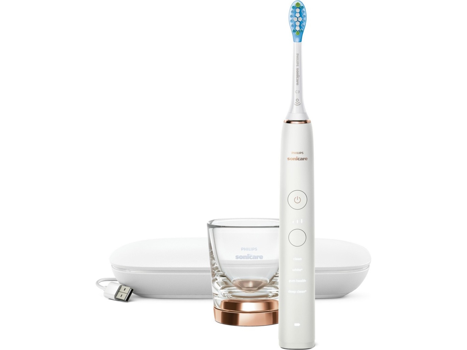 | Inkluderet tilbehør | Rejsetaske til USB-oplader, Glasoplader, C3 Premium Plaque Control-børstehoved |