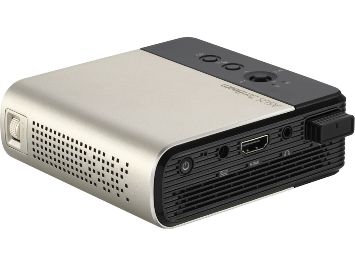 ASUS ZenBeam E2 mini LED projector, automatic portrait projection mode, 300 LED lumens, WVGA (854 x 480), wireless mirroring, built-in battery for up to 4-hour portable video playback, power bank, USB Type-A, HDMI, 5-watt speaker