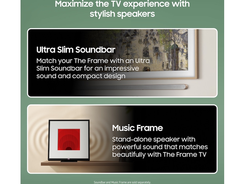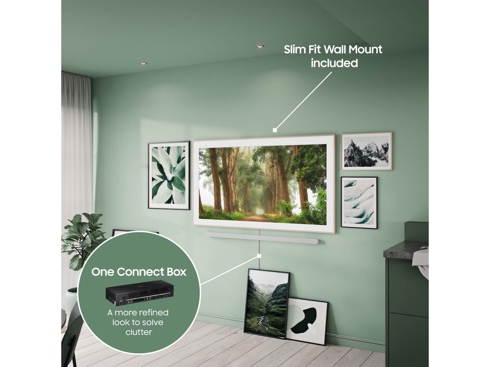 The Frame er ikke designet til at ligne et TV, men en moderne billedramme. Det smalle design og den ensfarvede bagside sikrer, at det tager sig smukt ud fra enhver vinkel. Du kan montere TV’et tættere på væggen end nogensinde med Slim Fit Wall Mount.