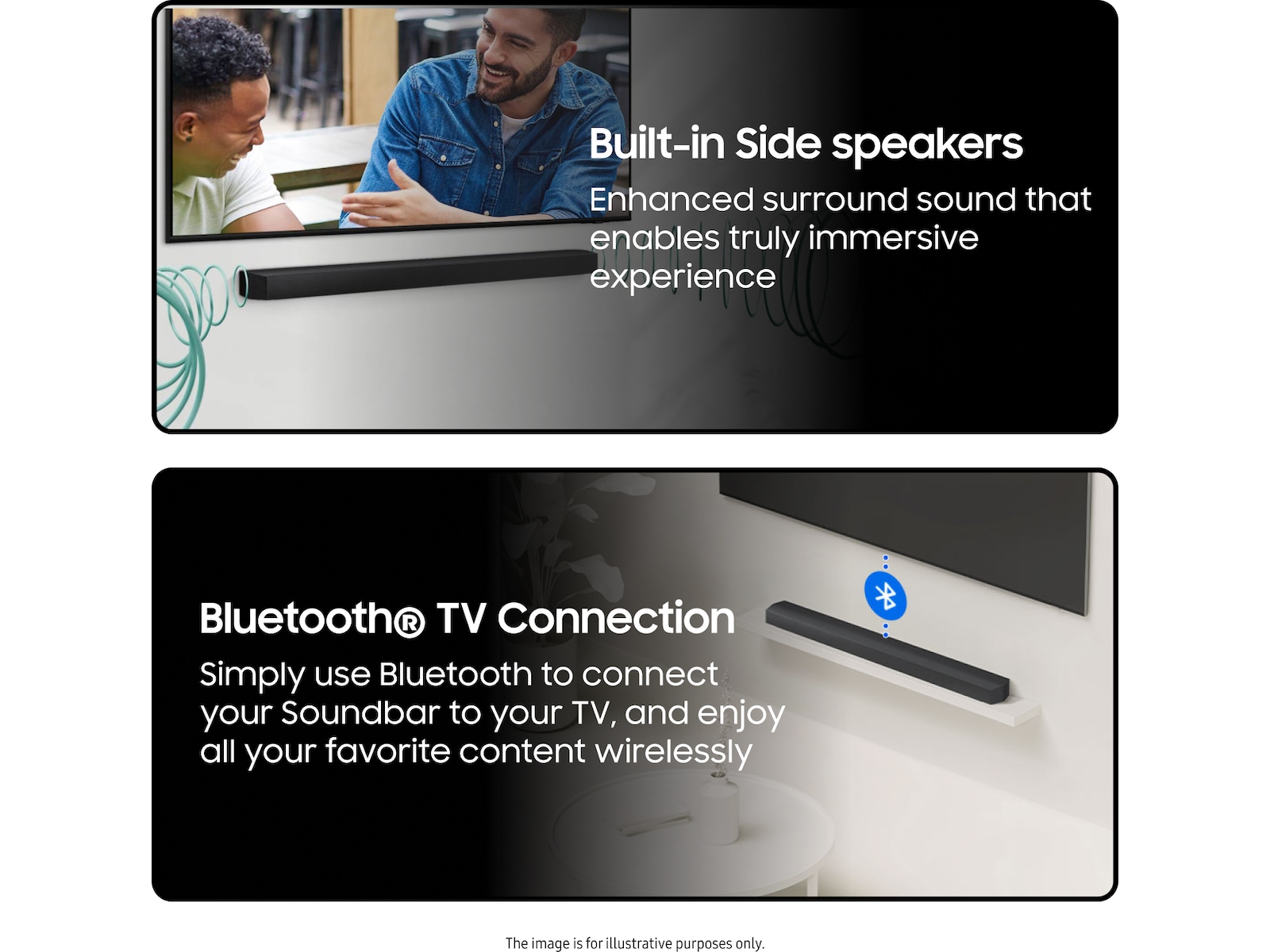 | Højttalere inkluderet | 1 x subwoofer - 250 Watt - trådløs, 1 x lydbar - 150 Watt - vægmonterbar/på bord |