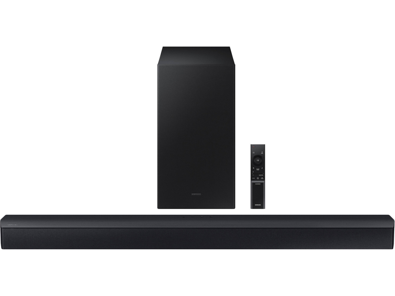 Den medfølgende subwoofer tilsluttes trådløst og giver en jævn og kraftfuld lyd.