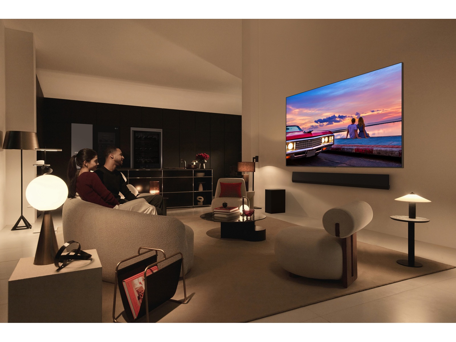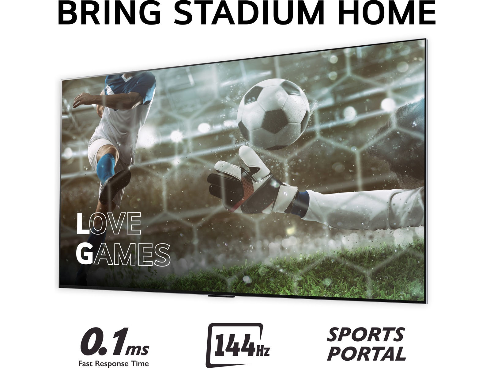 | Egenskaber | G-SYNC Compatible, Intelligent Voice Recognition, Family Settings, Freesync, Apple AirPlay 2 support, 4K High Frame Rate (HFR), AI Brightness Control, Always Ready, Game Dashboard, USB-webcamsupport, AI Genre Selection |
