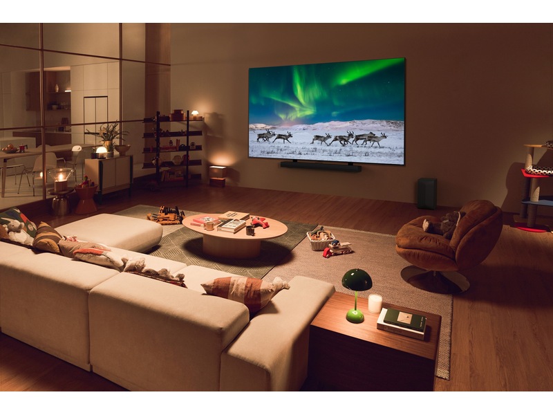 | Egenskaber | Boosteroid, Always Ready, 4K High Frame Rate (HFR), AI Genre Selection, Freesync, Smartphone fjernstyret, AI Brightness Control, Game Dashboard, Apple AirPlay 2 support, Family Settings, USB-webcamsupport |