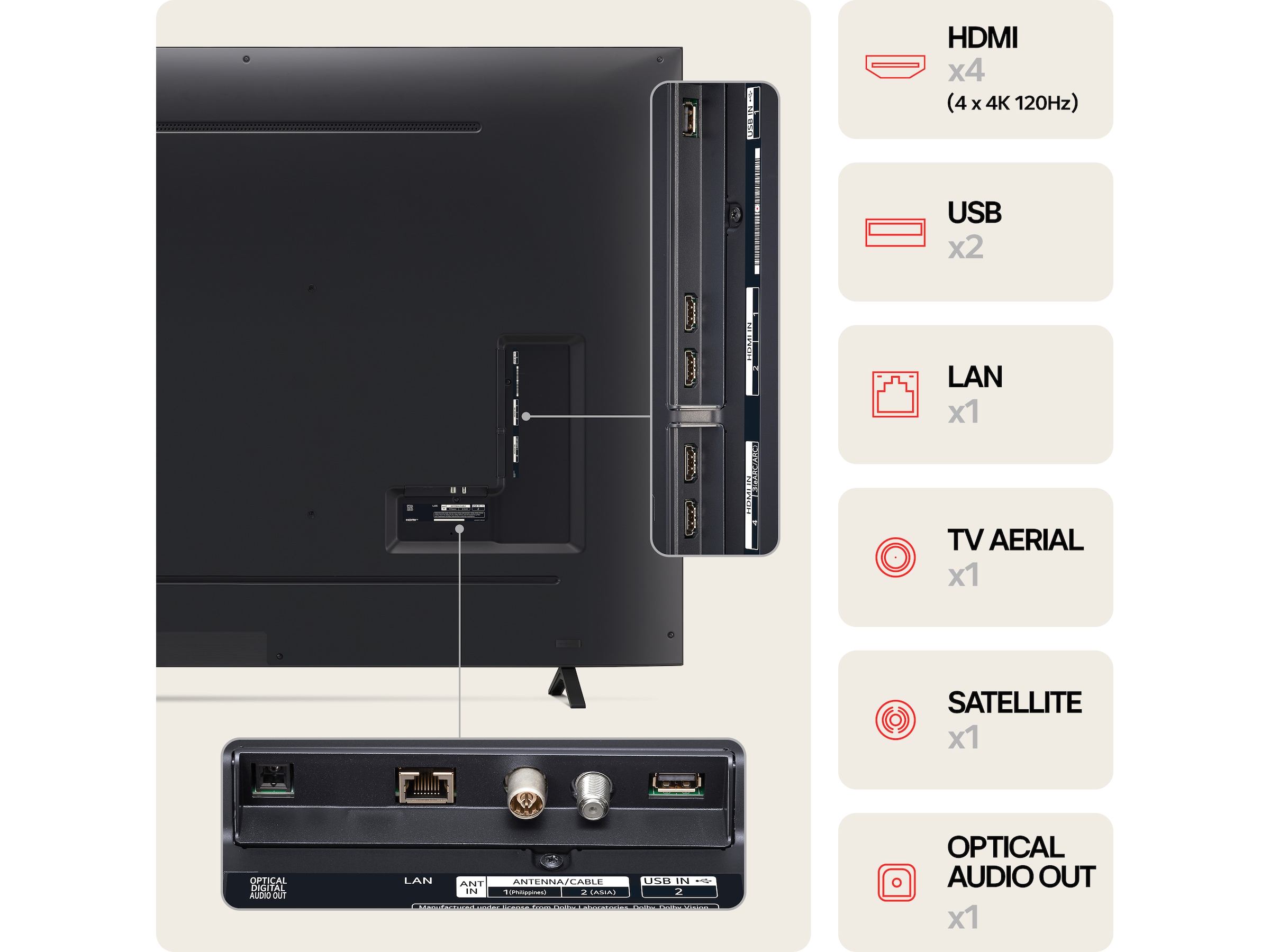 | Forbindelsestype | LAN, 3 x HDMI, Digital lydudgang (optisk), 2 x USB 2.0 |