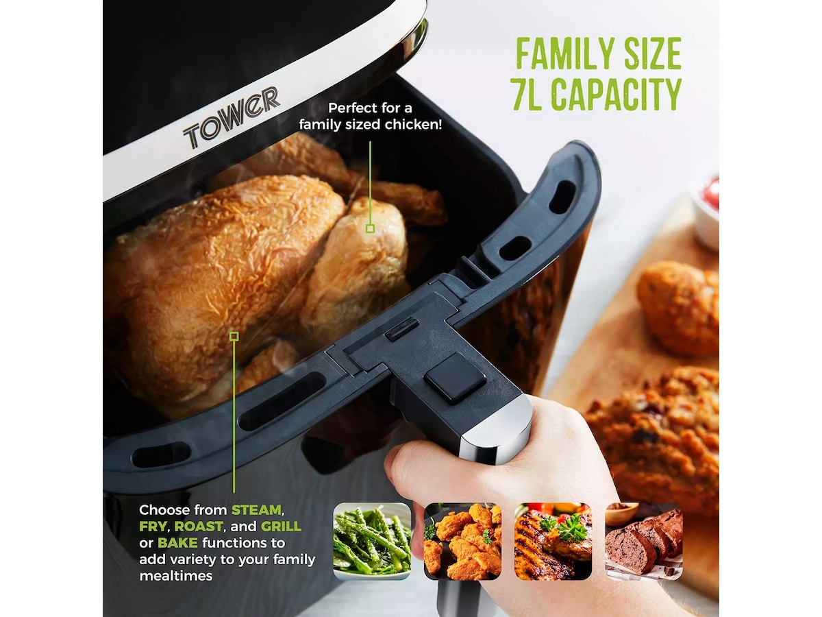 Vælg mellem damp-, stege-, stege- og grill- eller bagefunktioner for at tilføje variation til din families måltider. Den generøse kapacitet på 7 l passer til en hel kylling eller fælles, hvilket sparer dig tid, når du laver en søndagsmiddag for hele familien.