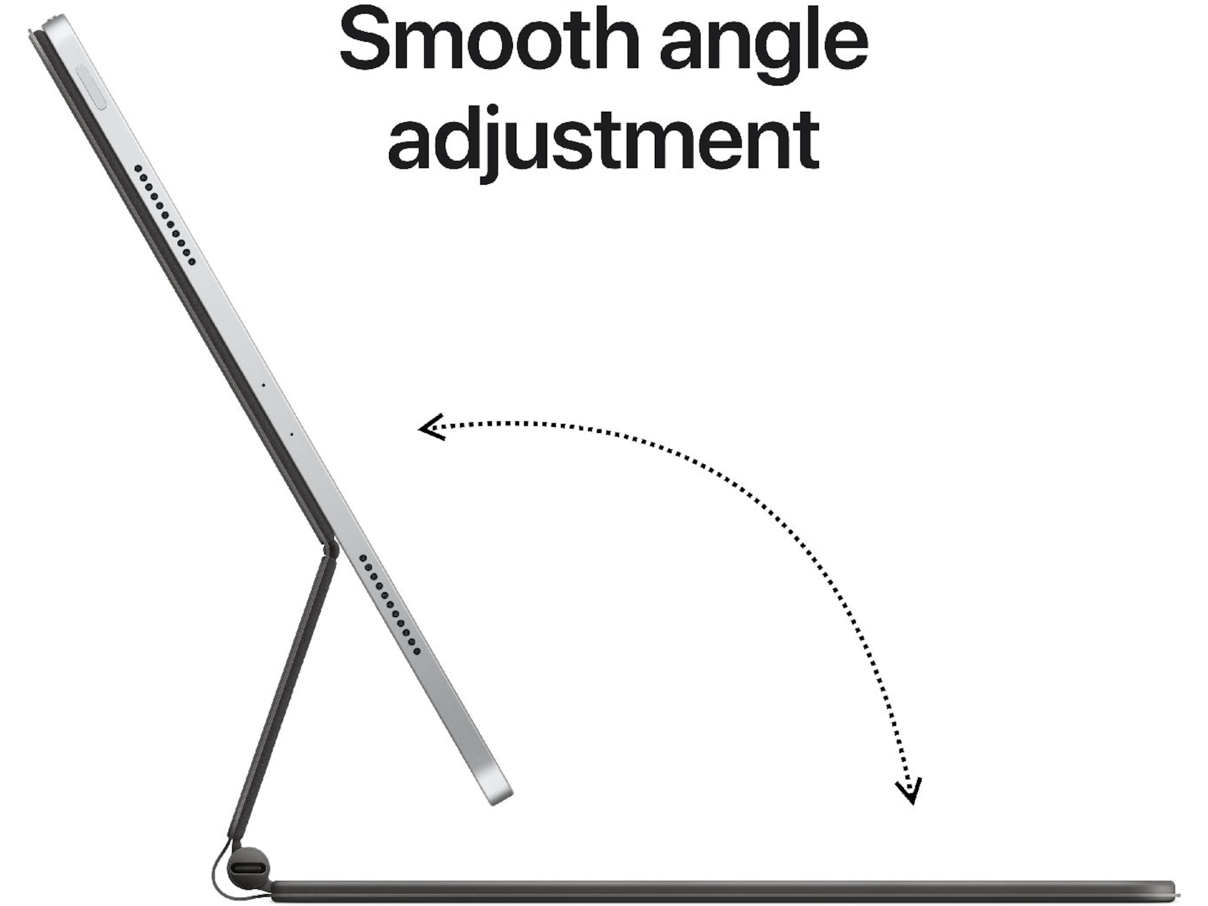 Magic Keyboard til iPad Pro har et slankt og bærbart nyt design med håndleds­støtte i aluminium. Det giver dig en fantastisk skrive­oplevelse og et hav af muligheder med pegefeltet. Tastaturet har en række med 14 funktions­taster, så du hurtigt kan få adgang til funktioner som skærmens lysstyrke, lydstyrke­knapperne og andre funktioner, samt et USB‑C-stik til pass‑through-opladning. Tastaturets svævende design gør, at du let kan justere iPad Pro i forskellige synsvinkler.