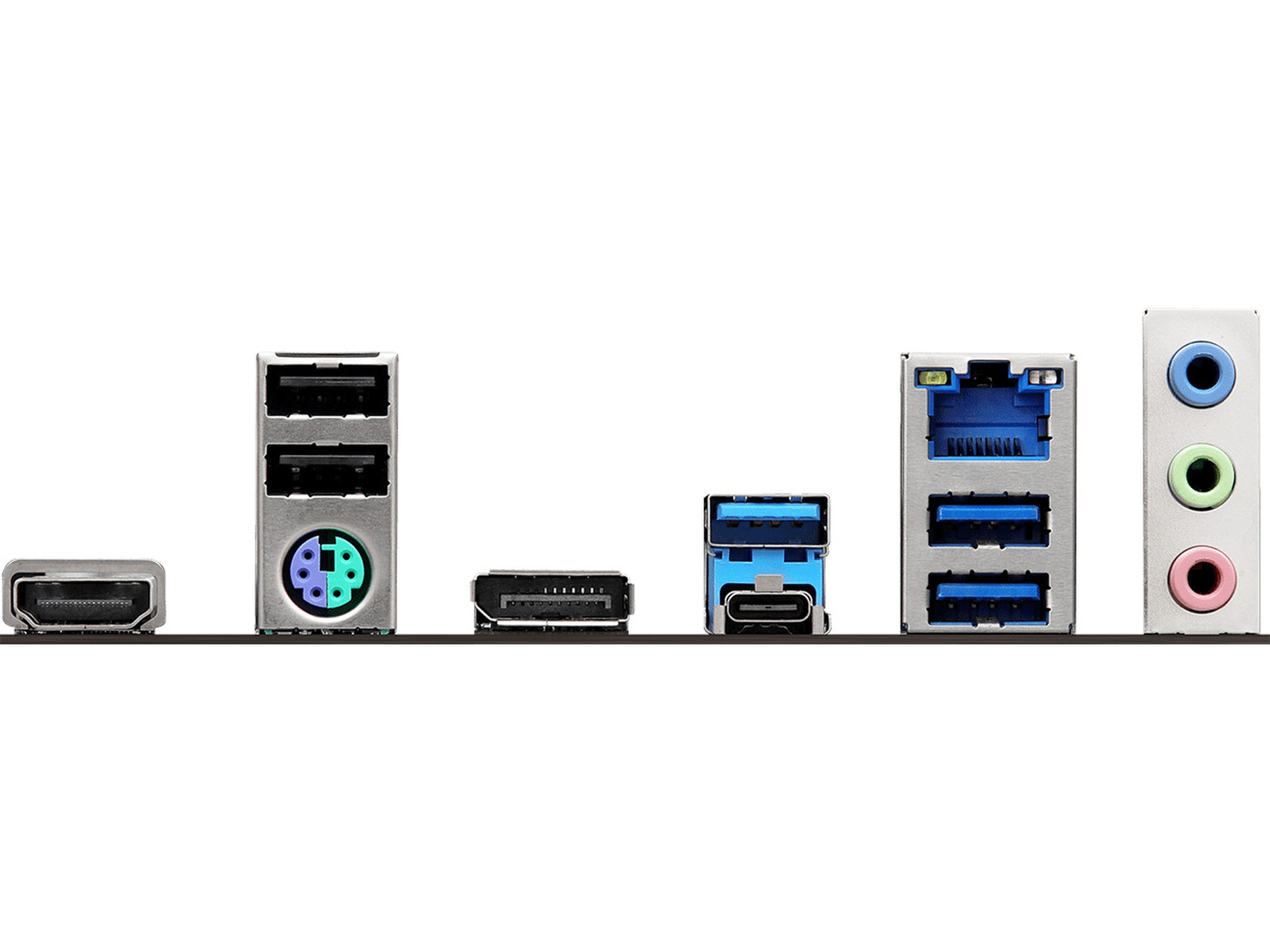 Interface 2 x antenne, 3 x USB 3.2 Gen 1, 1 x PS/2-tastatur/mus, 1 x HDMI, 1 x DisplayPort, 1 x LAN (2.5Gigabit Ethernet), 1 x mikrofon - mini-jack, 2 x USB 2.0, 1 x USB-C 3.2 Gen 1, 1 x audio linje-ind - mini-jack, 1 x audio linje-ud - mini-jack