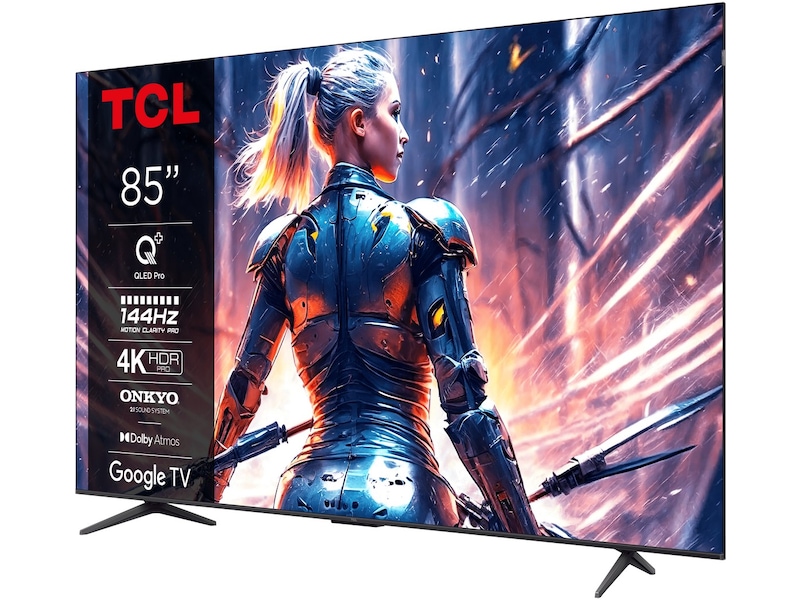Elegant og smart: Bezel-mindre luksusdesignet i TCL T8B-serien kommer med et justerbart dobbeltpositionsstativ.*