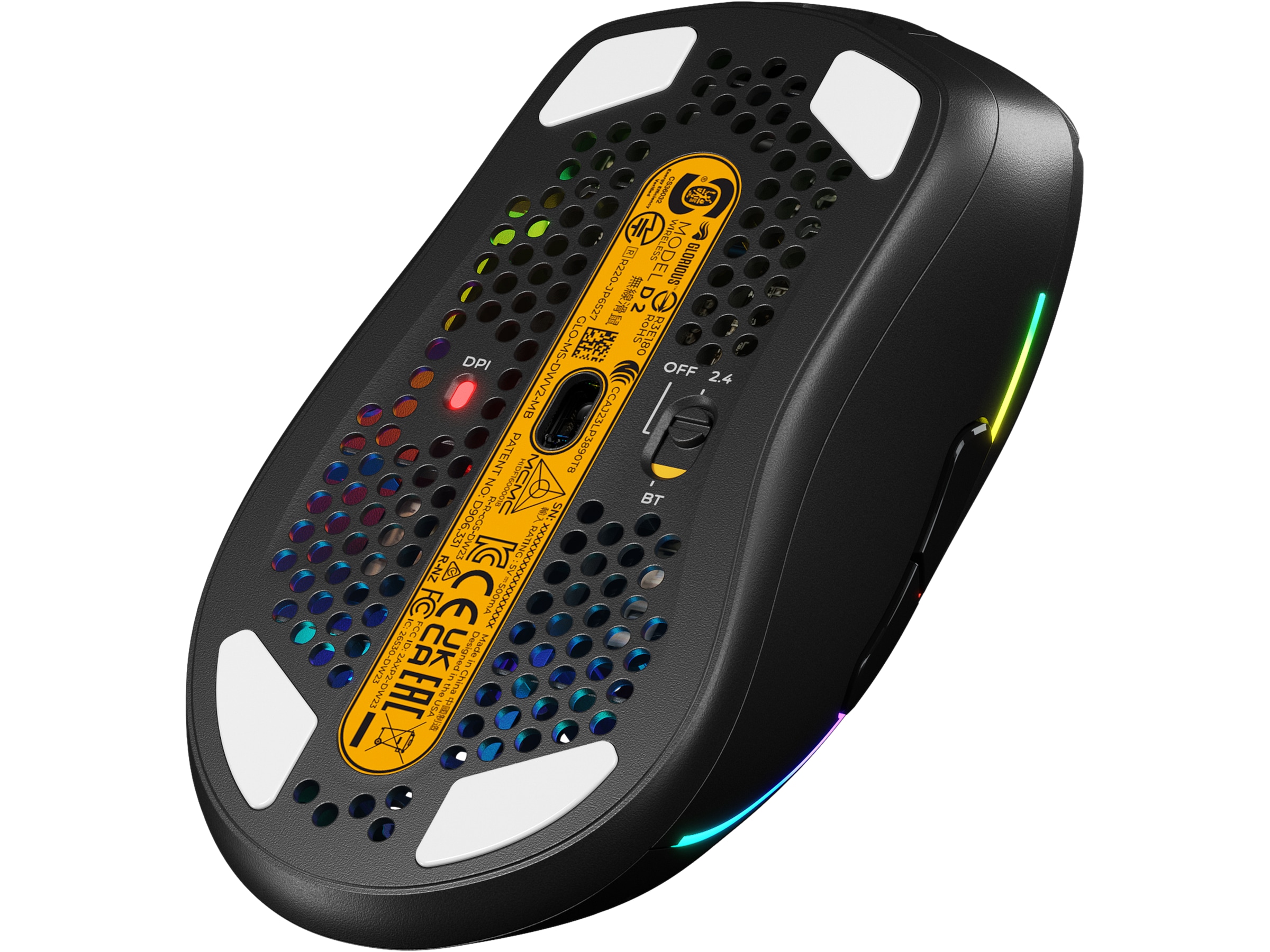 Eller, hvis du vil spille på farten, kan du skifte musens trådløse tilstand til Bluetooth for forlænget batterilevetid på op til 210 timer* og problemfri parring med din bærbare computer og andre kompatible enheder. *Mål med RGB slukket.
