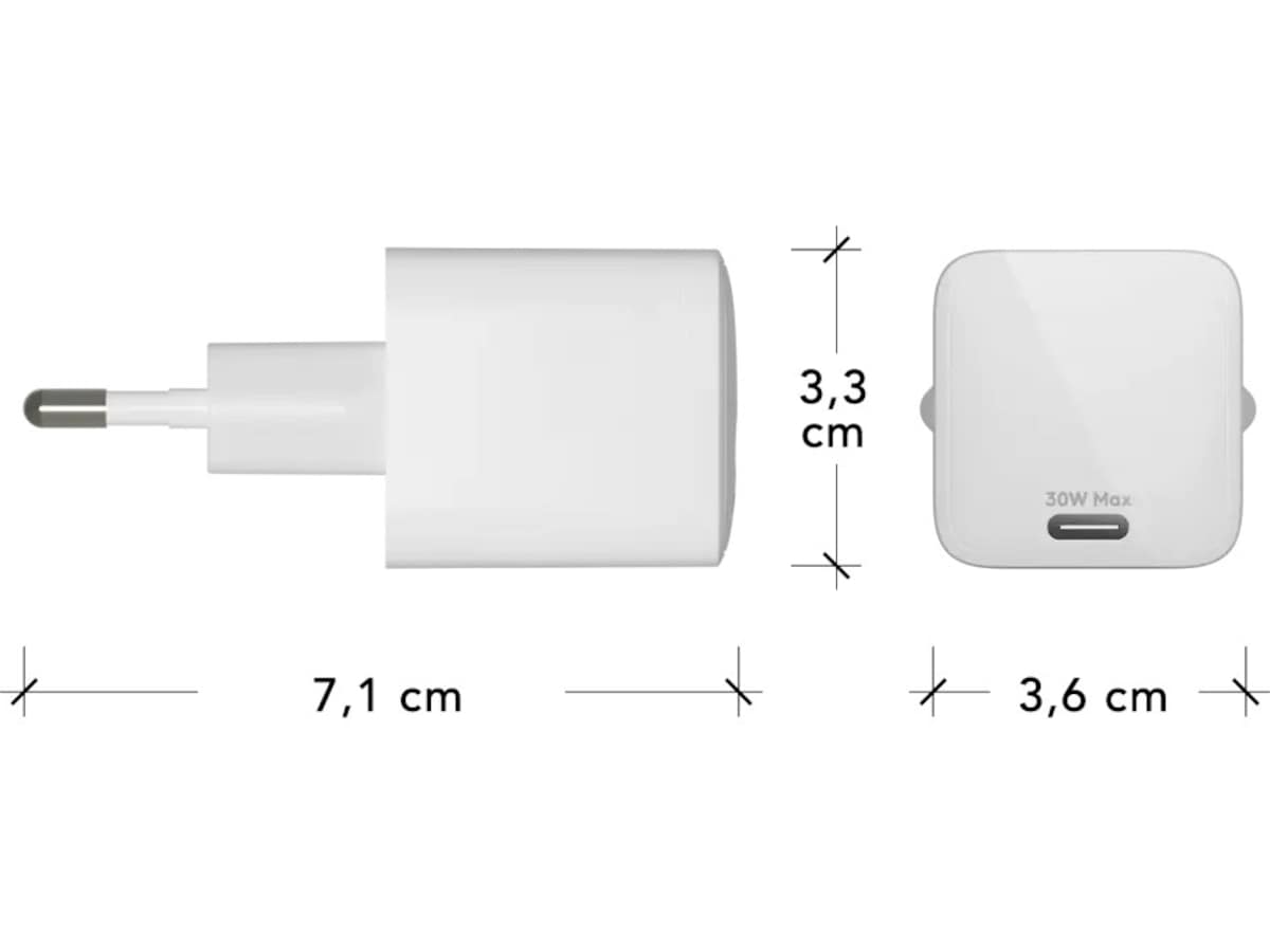- 30W USB-C leverer en sikker og hurtig opladning på op til 50 % på 30 minutter til smartphones