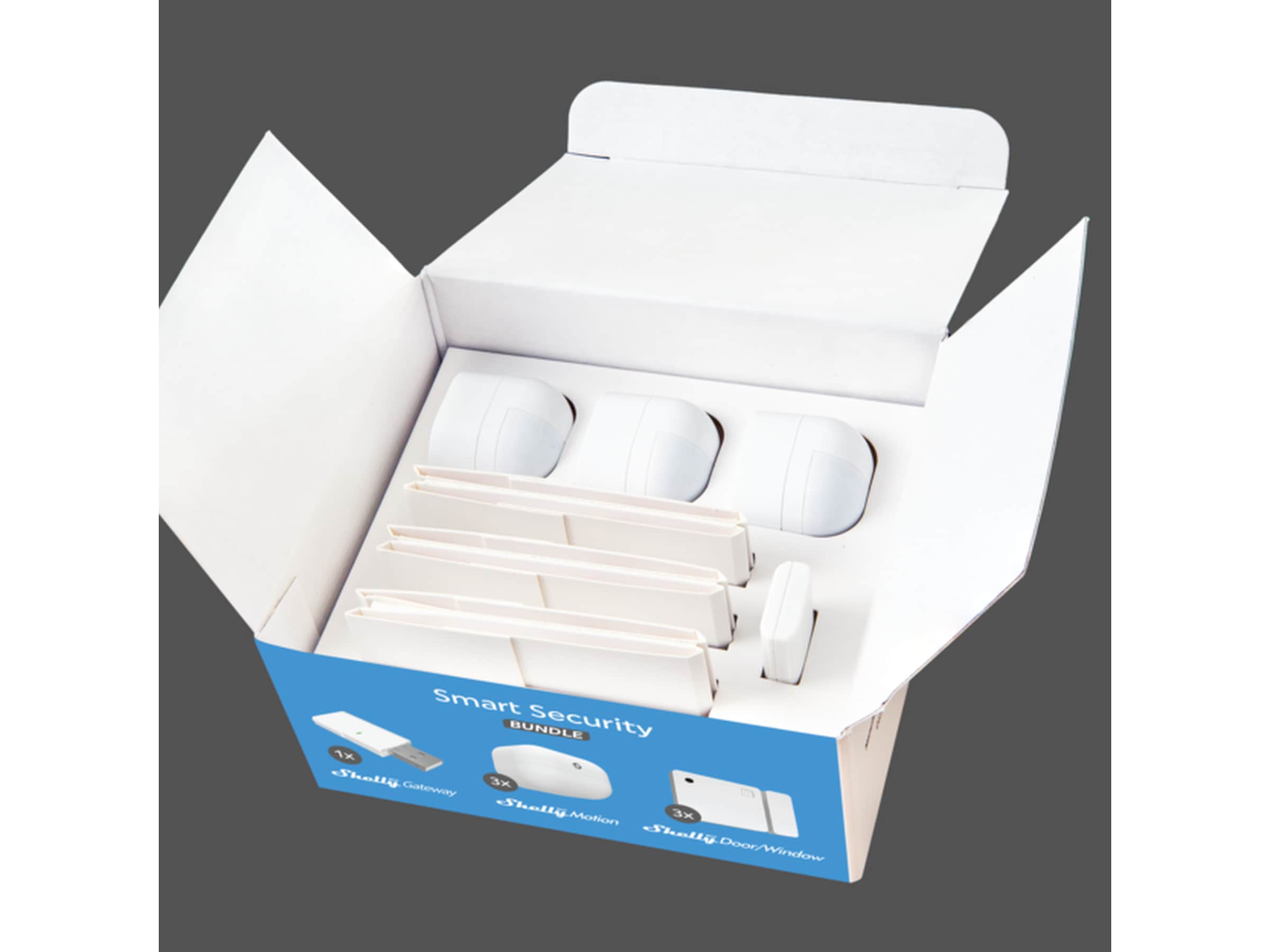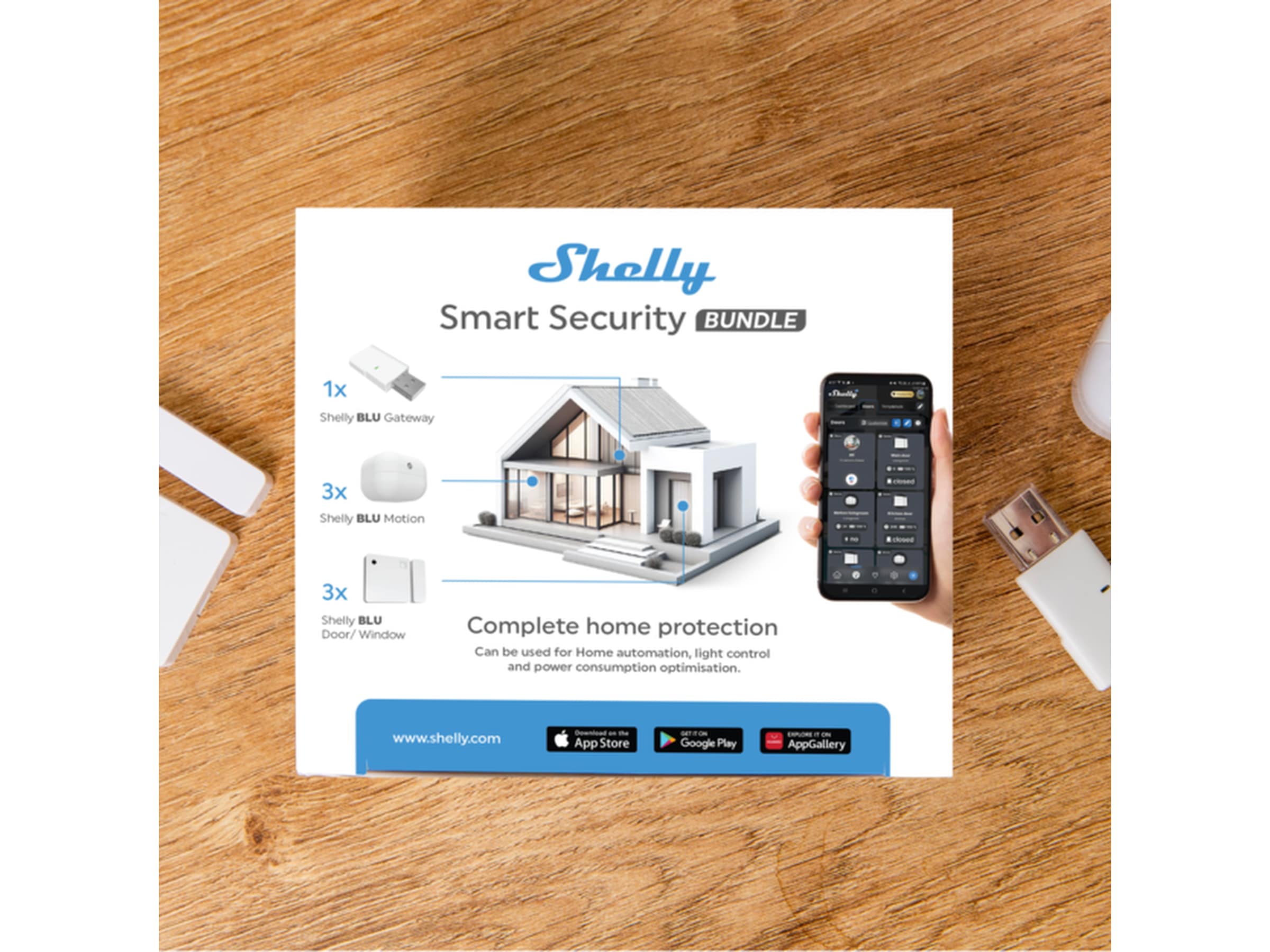 Shelly Smart Security Bundle er et sæt Bluetooth-enheder, der sammen giver den perfekte løsning til at beskytte dit hjem. Du kan overvåge bevægelse og opsætte brugerdefinerede alarmzoner, registrere åbning eller lukning af døre og vinduer og modtage øjeblikkelige meddelelser, uanset hvor du er. Alle Bluetooth-sensorer tilføjes automatisk til din Shelly Smart Control-konto ved inkludering af Shelly BLU Gateway.