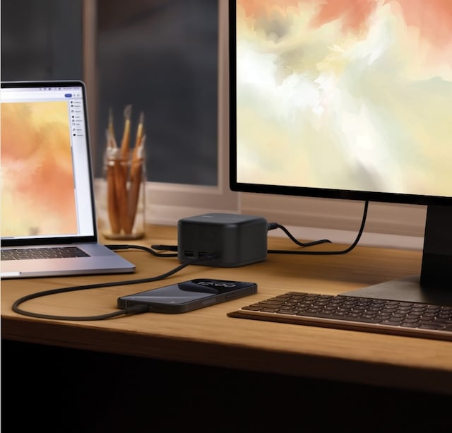 GaN power comes to your docking station with this 6-in-1 solution. This compact dock features a built in 130W GaN power supply providing 96W of power to your host device, 4K 60Hz monitor support, USB-C and USB-A ports, and up to 5Gbps of data transfer speeds.