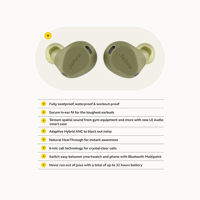 De er hårdføre som ingen andre. Næste generation af verdens mest hårdføre earbuds*. Afprøvet og testet under ekstreme forhold: Intet kommer bag på Elite 8 Active Gen 2. Med deres uovertrufne holdbarhed og ydeevne er disse earbuds fuldstændigt svedtætte, vandtætte og altid med på en udfordring. Det vingefri design bliver siddende i øret, uanset hvor meget du bevæger dig.