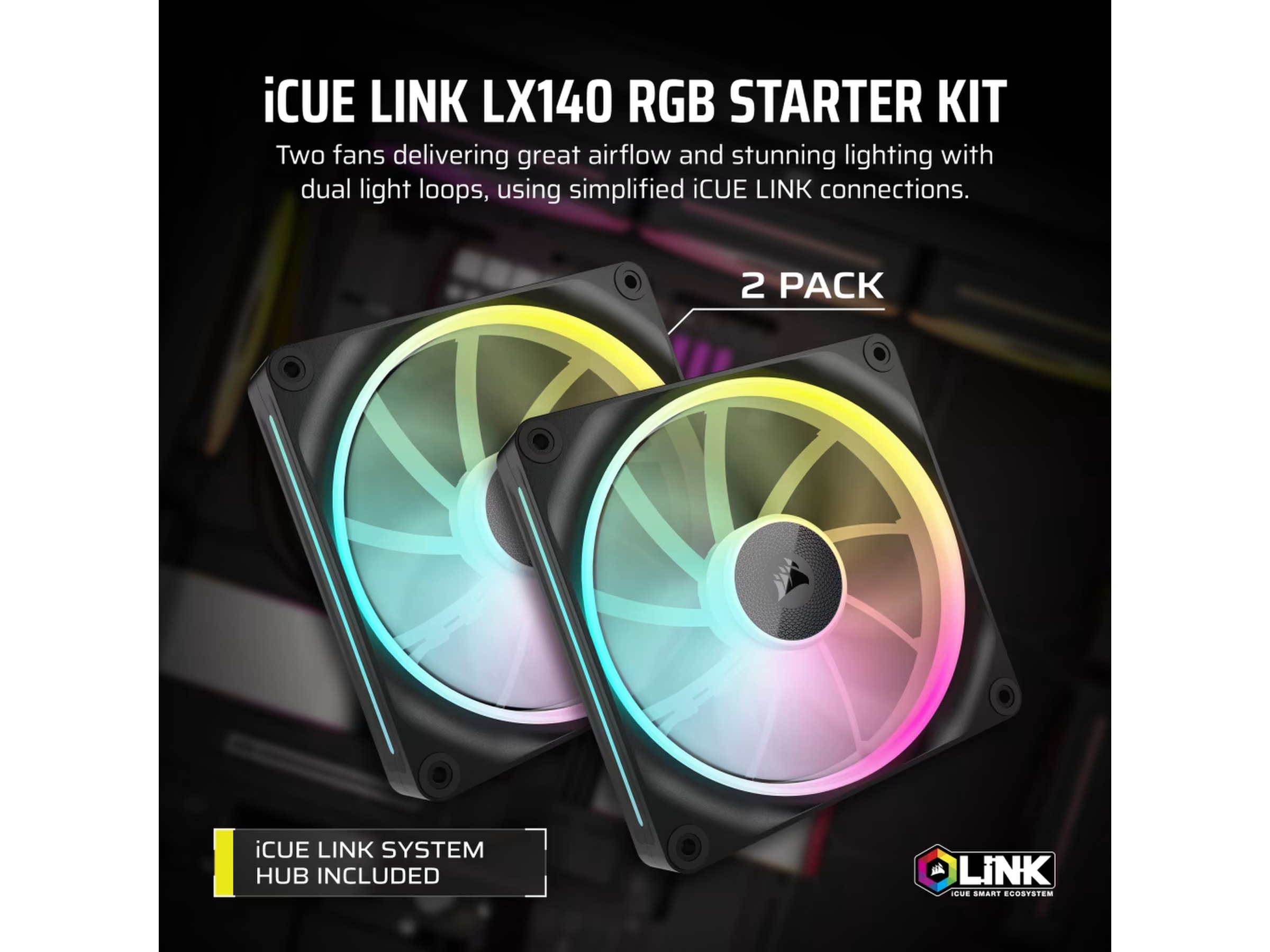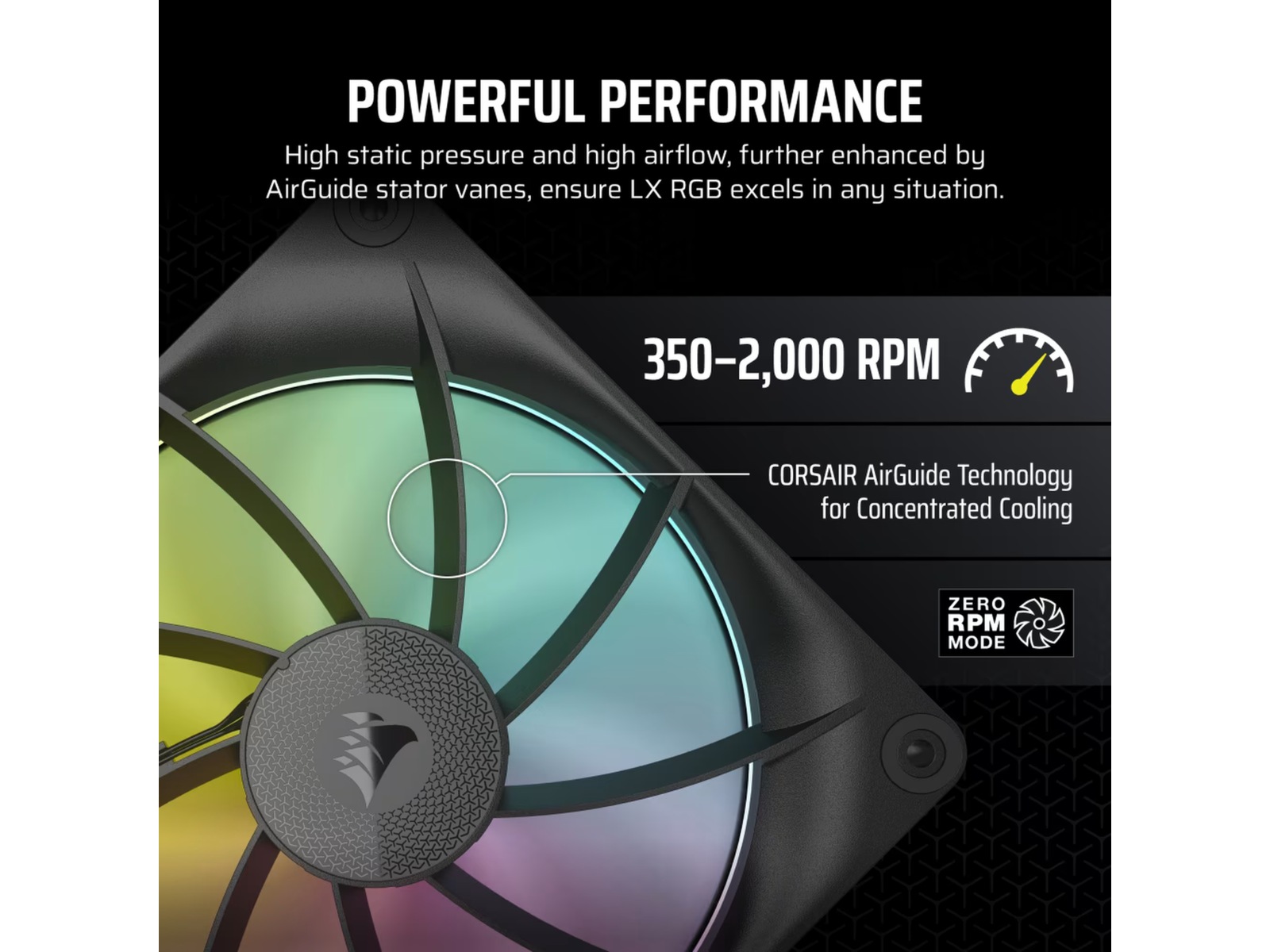 - Kræver iCUE LINK System Hub (inkluderet med LX RGB Starter Kits)