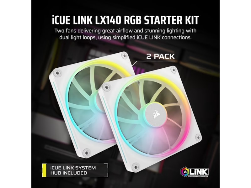 - Kræver iCUE LINK System Hub (inkluderet med LX RGB Starter Kits)