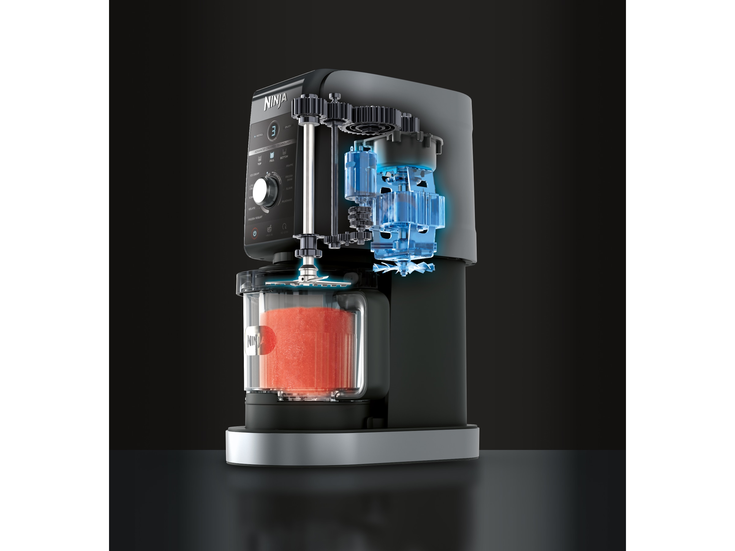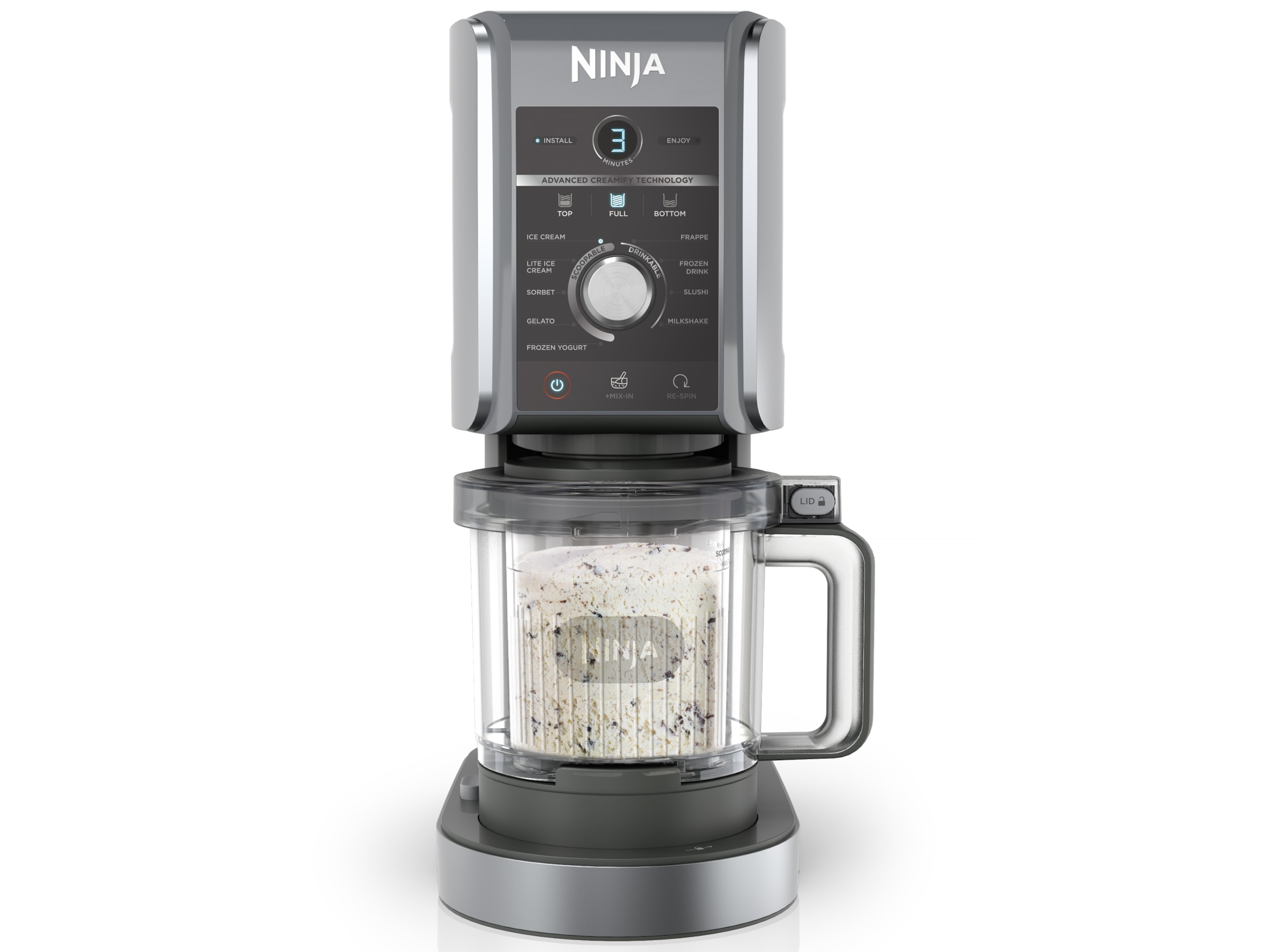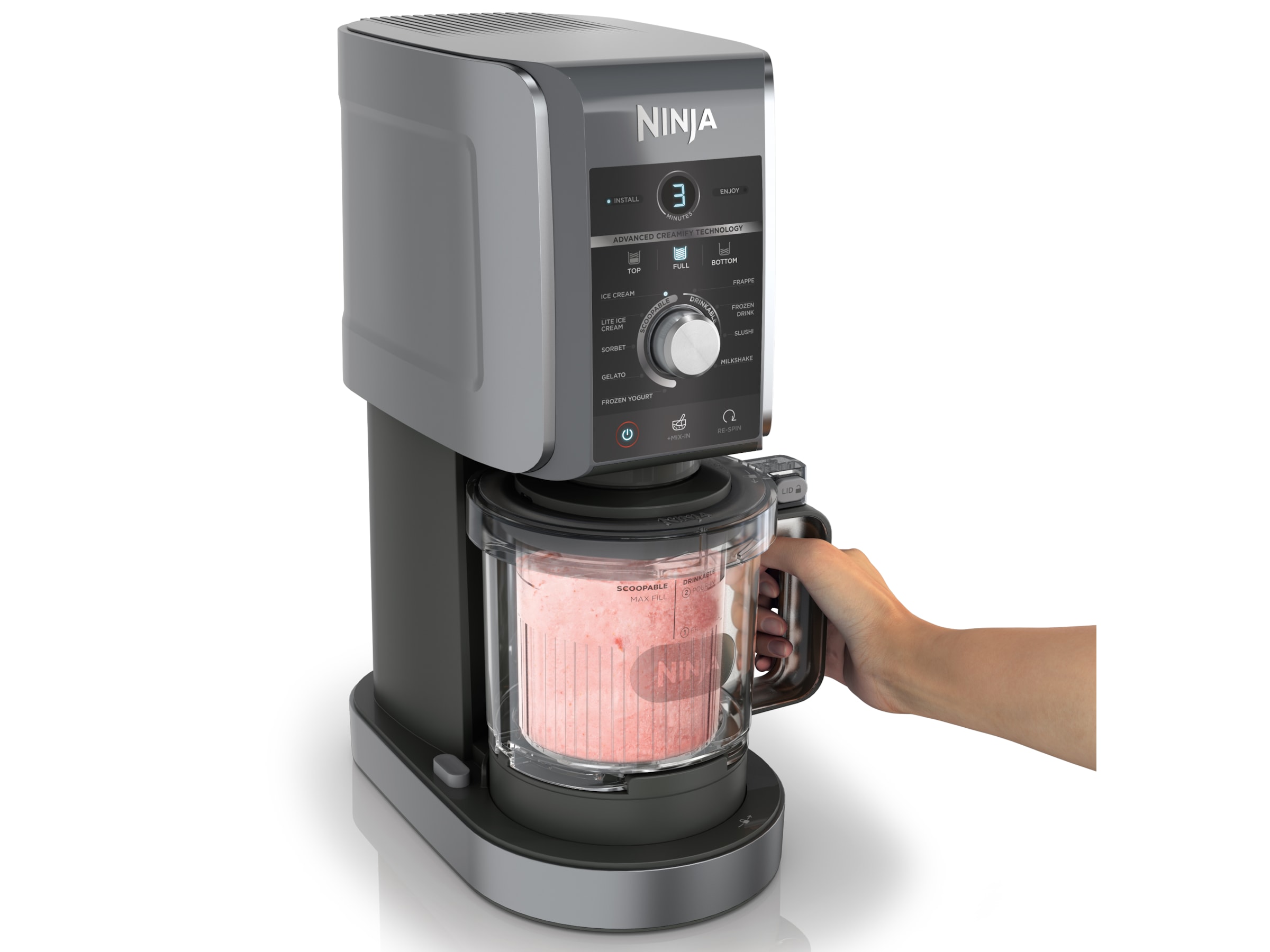 Nyd CREAMi-klassikere som is, gelato og Mix-Ins. Eller udforsk nye og spændende funktioner som Slushi, Frappe, Frozen Yoghurt og Frozen Drink. Nu med en 50%* større kapacitet er der endnu mere at elske ved CREAMi. Er du ikke sikker på, hvor du skal starte? CREAMi-opskriftsguiden har alt, hvad du skal bruge for at komme i gang med at lave drinks og desserter. Og med magten i dine hænder kan du til enhver tid nyde sukkerfattige, veganske, proteinrige eller mælkefri favoritter.