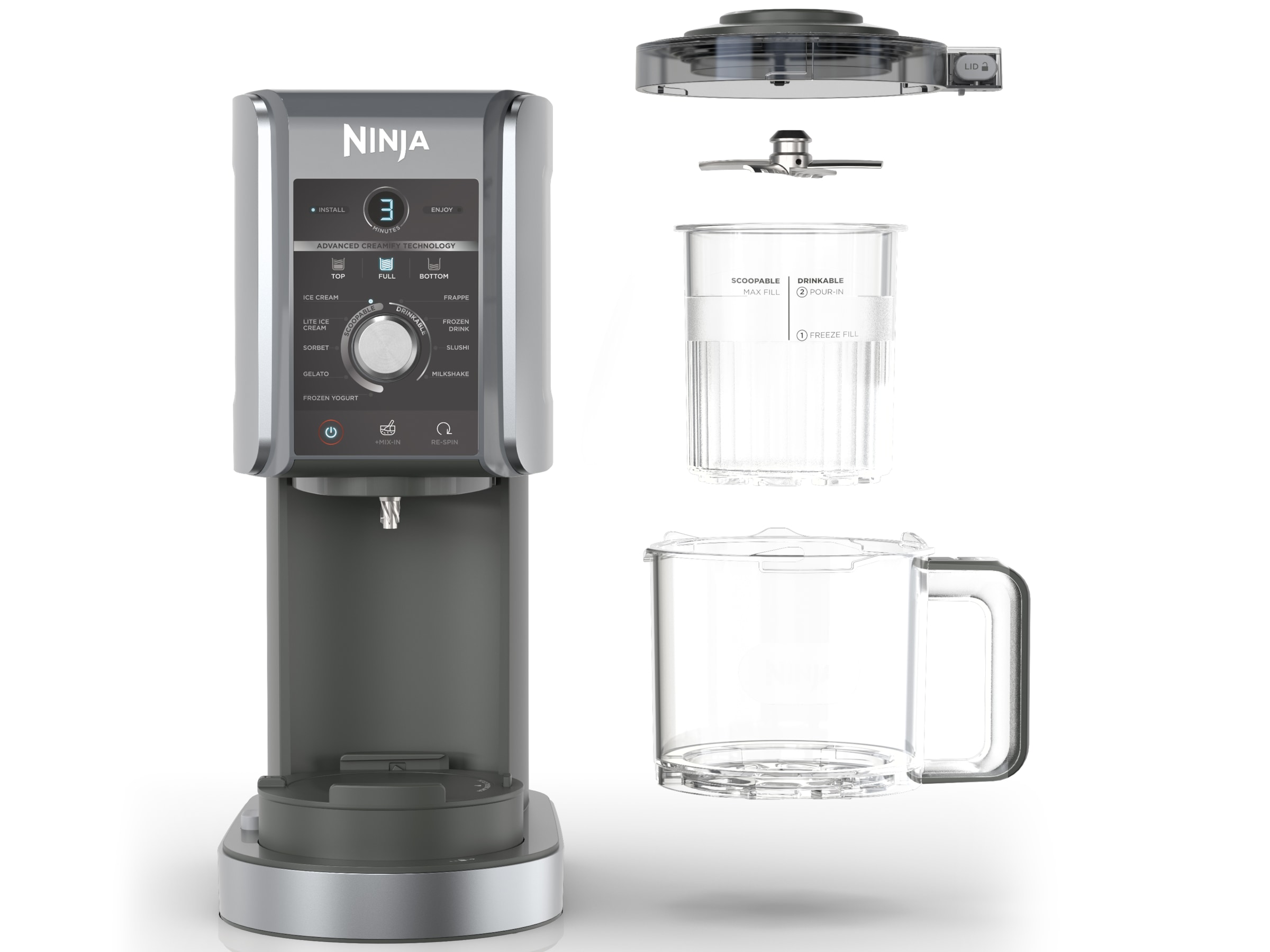 Ninja CREAMi Deluxe indeholder 10 programmer: Ice Cream, Sorbet, Light Ice Cream, Gelato, Milkshake, Mix-In, Frappe, Frozen Drink, Slushi & Frozen Yoghurt. De aftagelige dele, herunder Deluxe-kar og -låg, yderskål, låg og padle, kan vaskes i opvaskemaskine, så de er nemme at rengøre.