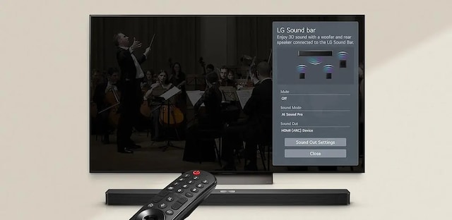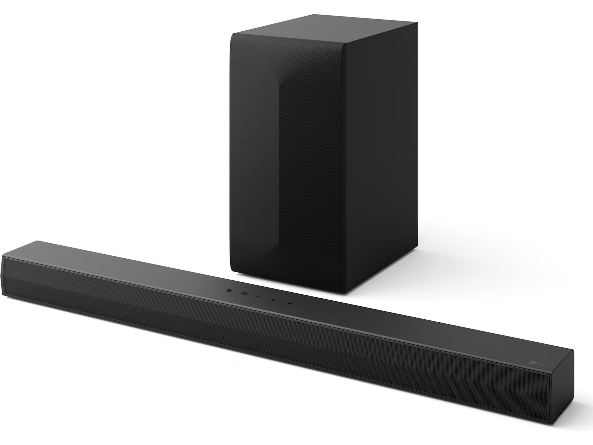 Fuldend LG TV-oplevelsen med soundbaren, der smukt supplerer dets design og lydmæssige ydeevne.