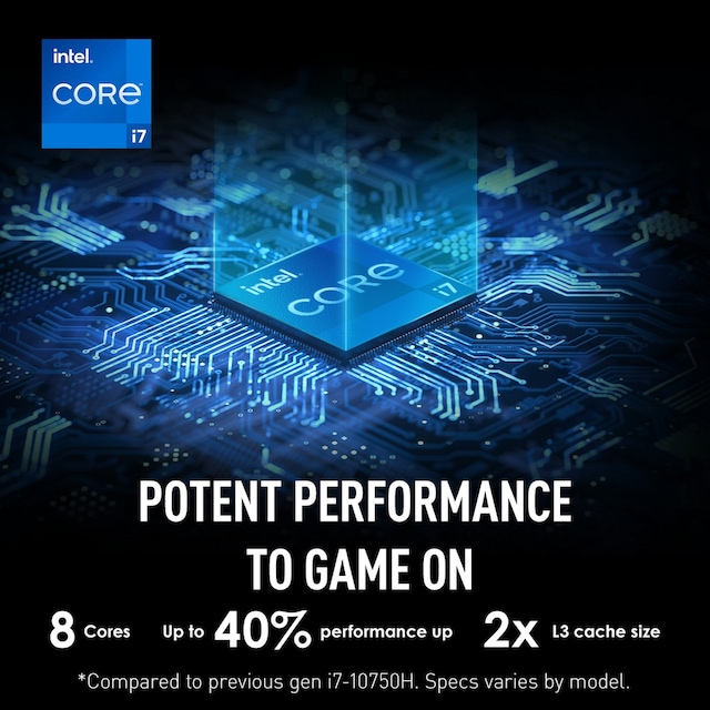 * Sammenlignet med tidligere generation i7-10750H. Specifikationer varierer efter model.