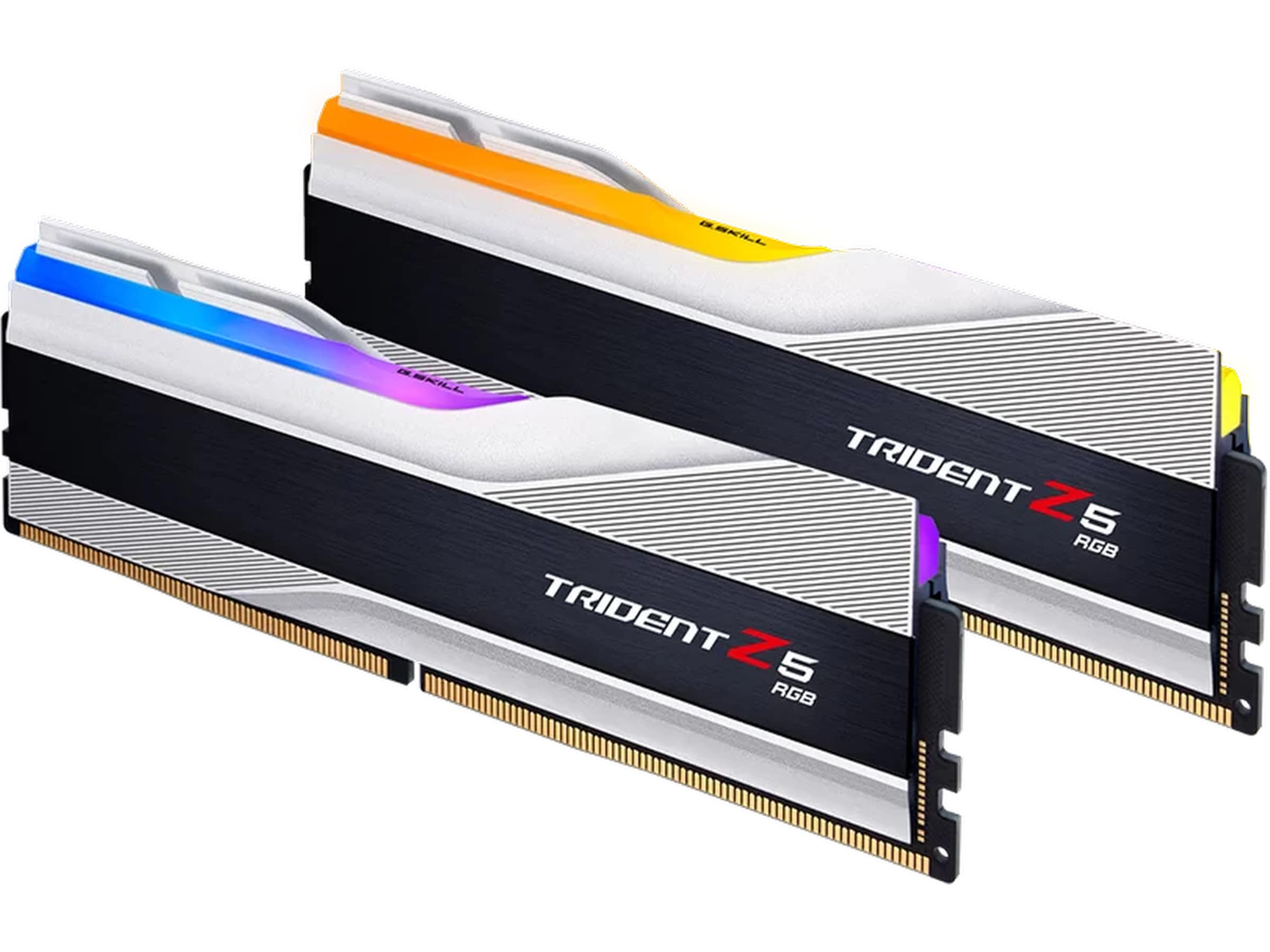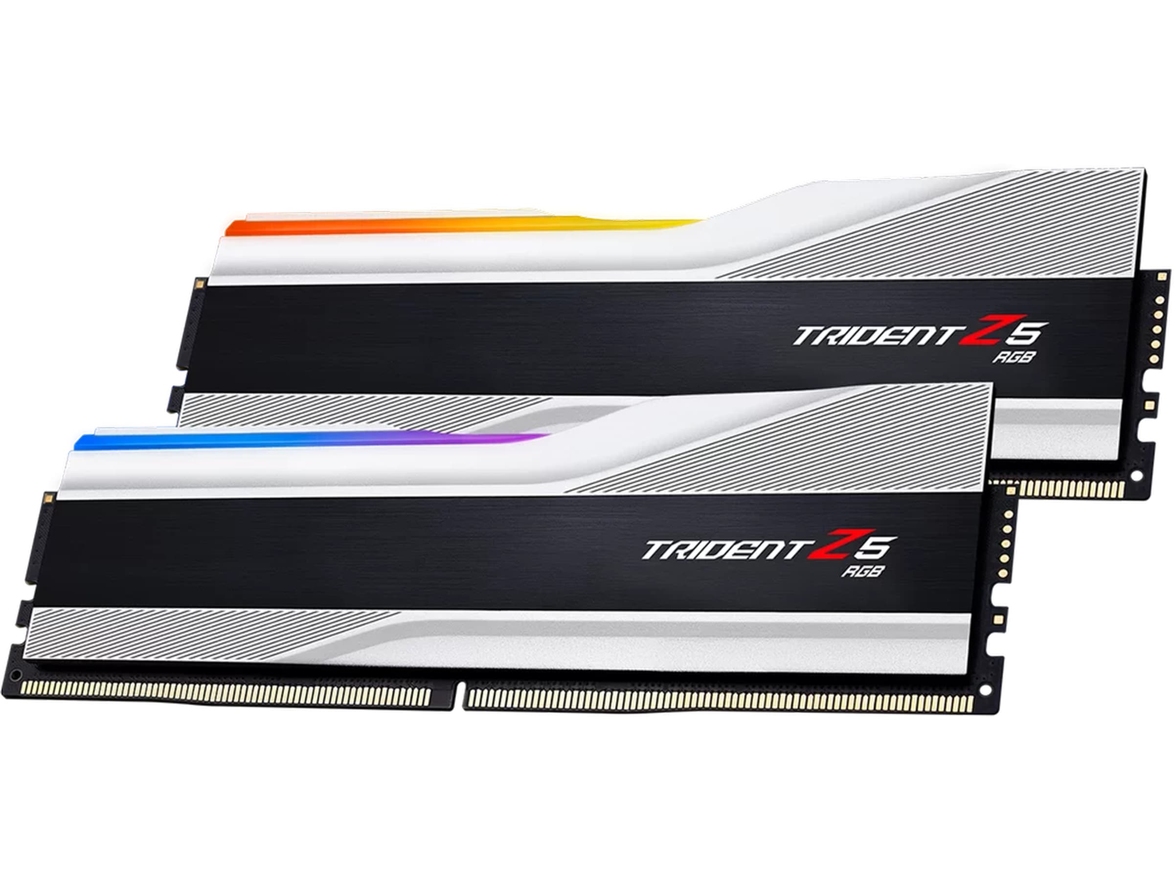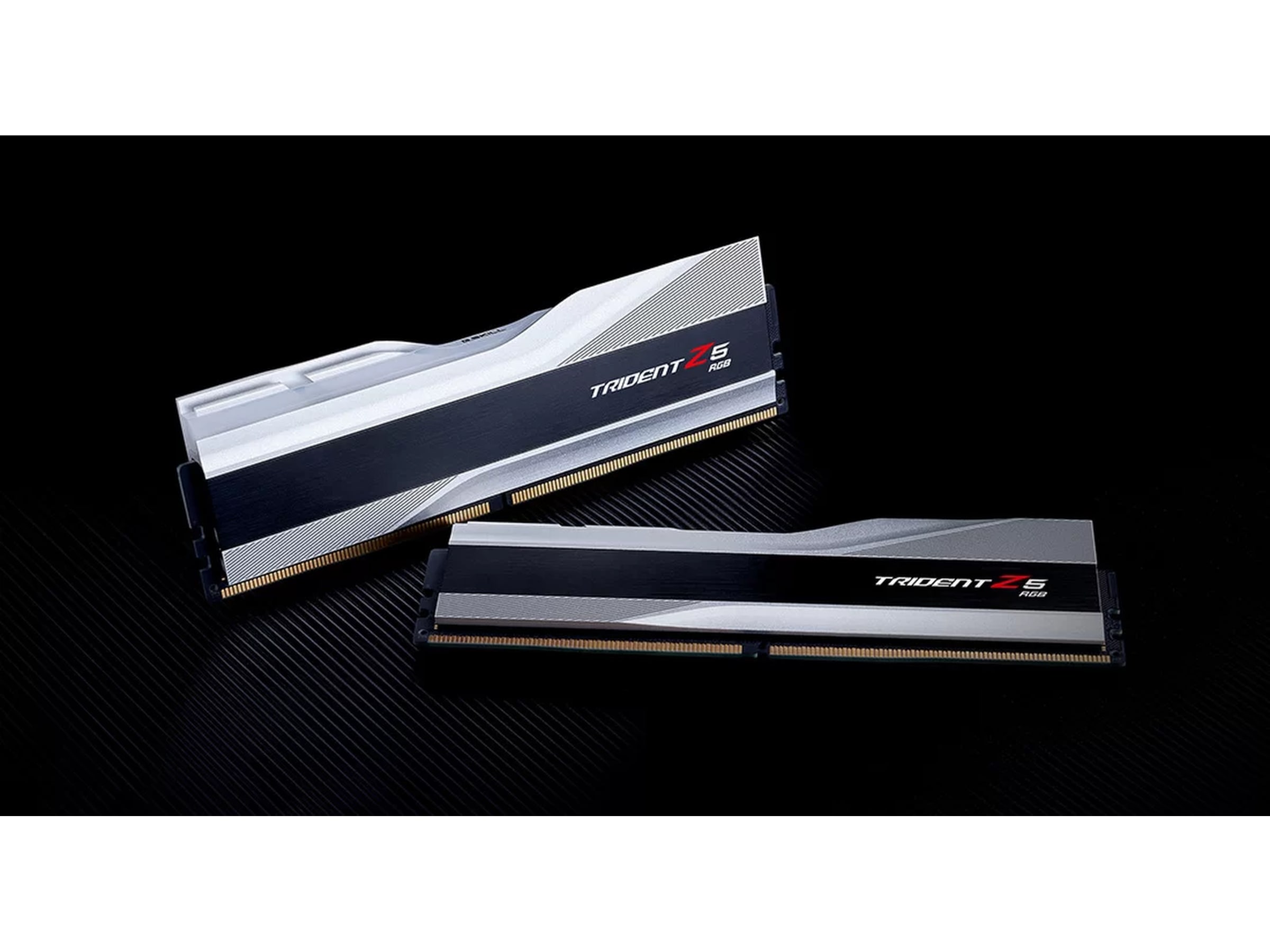 Trident Z5-familien inkorporerer hypercar-designelementer i den ikoniske Trident-varmespreder, hvilket skaber et slankt og futuristisk look. Med en sort børstet aluminiumsstrimmel, der er indsat i en metallisk sølv, mat sort eller mat hvid krop, og toppet med en gennemskinnelig RGB lysbjælke optimeret til jævn belysning, er Trident Z5 RGB ideel til en bred vifte af pc-byggede temaer.