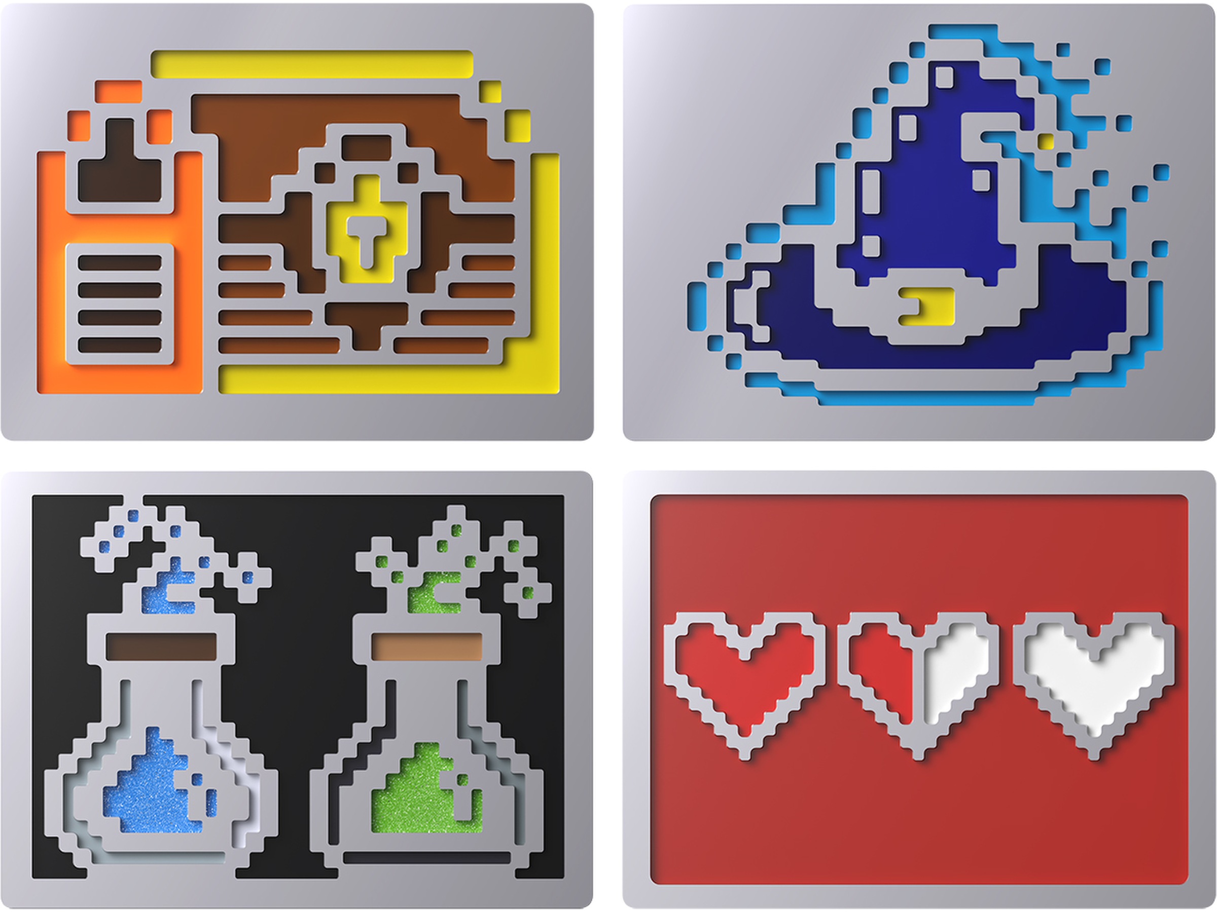 Vælg mellem 3 forskellige temaer: Sød, 8-bit og abstrakt. Hver temapakke indeholder et sæt med 4 badges.