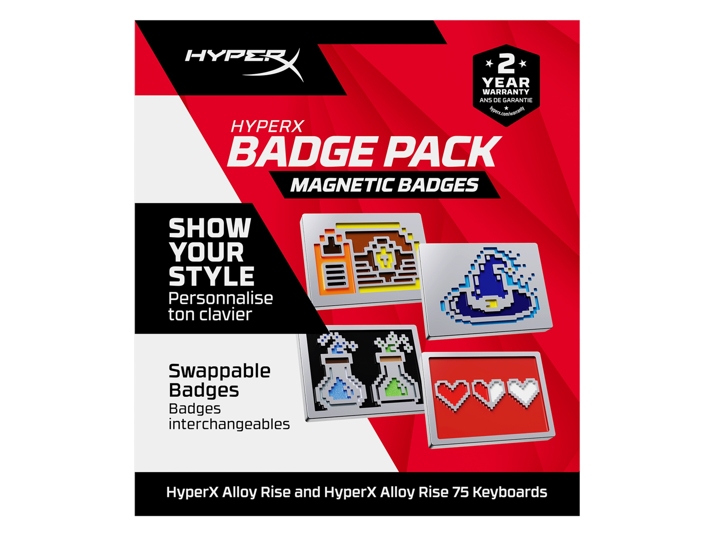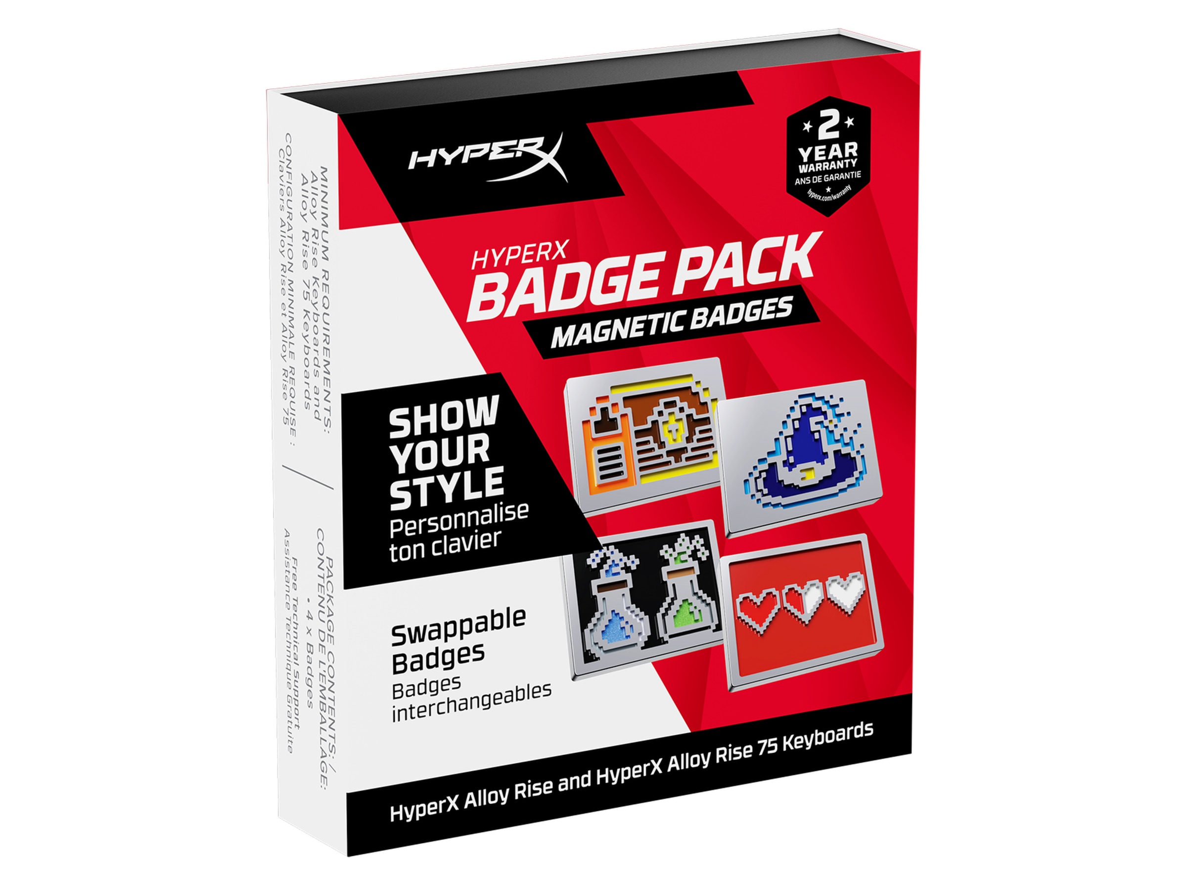 Leder du efter en enkel måde at tilføje lidt ekstra stil og personliggørelse til dit tastatur? En pakke HyperX Magnetic Badges er den perfekte måde at fremhæve æstetikken på dit HyperX Alloy Rise-tastatur. HyperX Magnetic Badges er super nemme at påføre eller skifte ud, og de er en budgetvenlig måde at subtilt opdatere dit tastaturs udseende og få et smil på læben. Hver af de 3 individuelle temapakker (Sød, 8-bit og abstrakt) inkluderer 4 magnetiske, hårde emaljemærker.