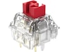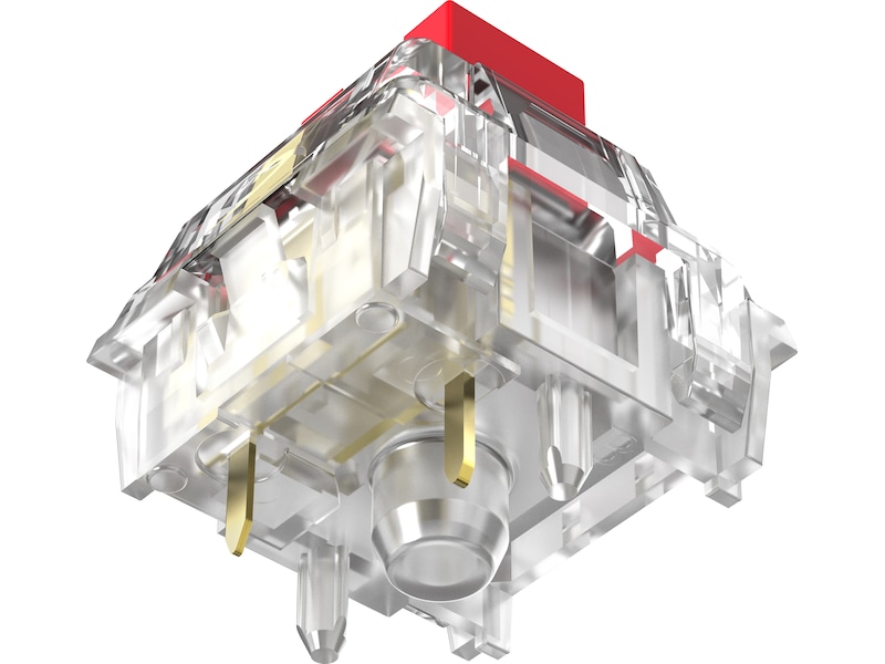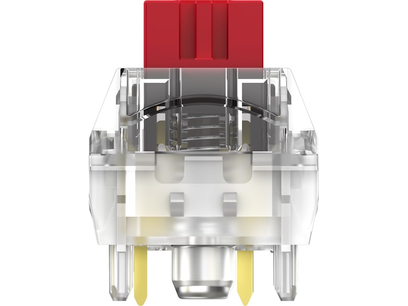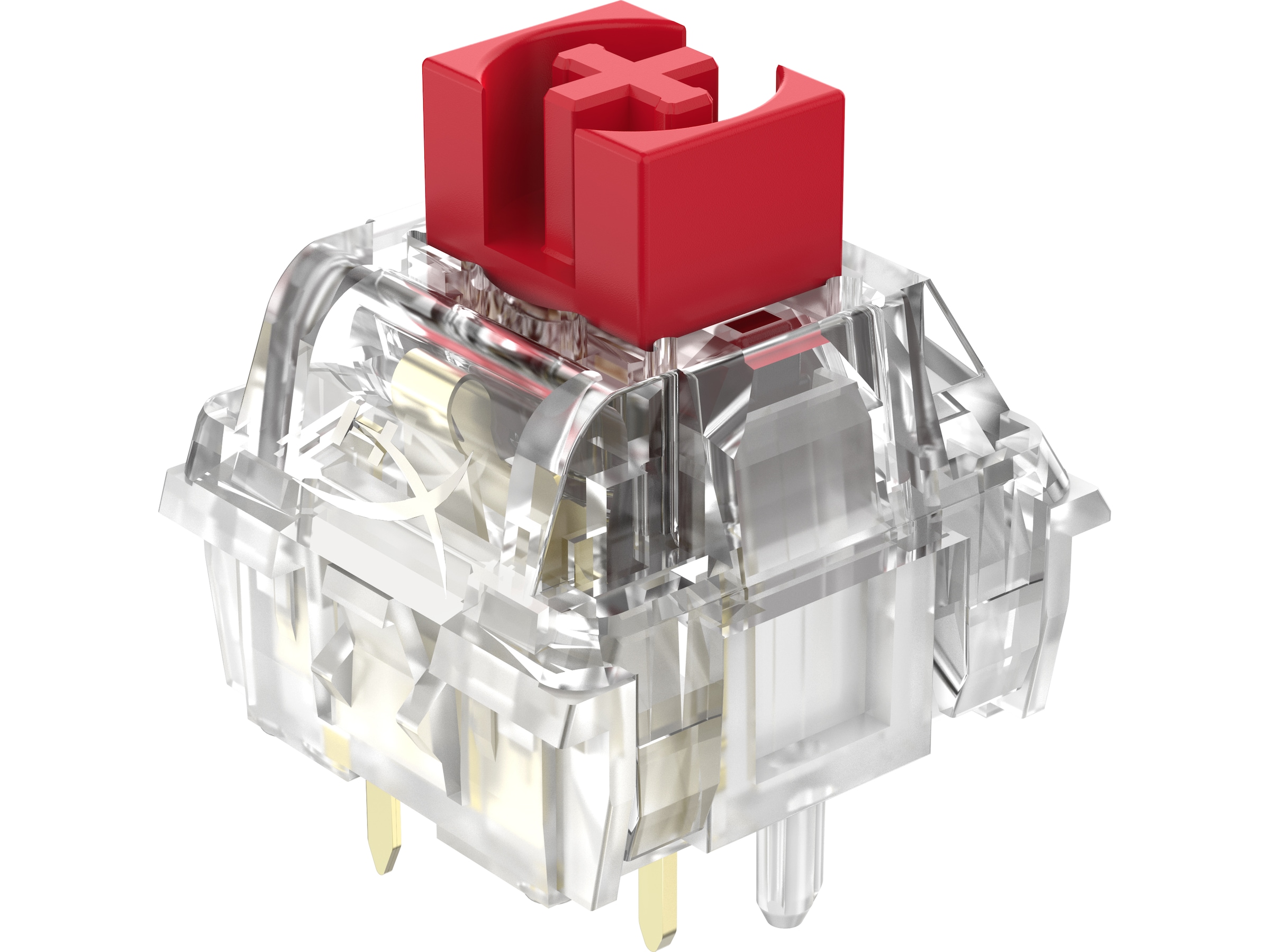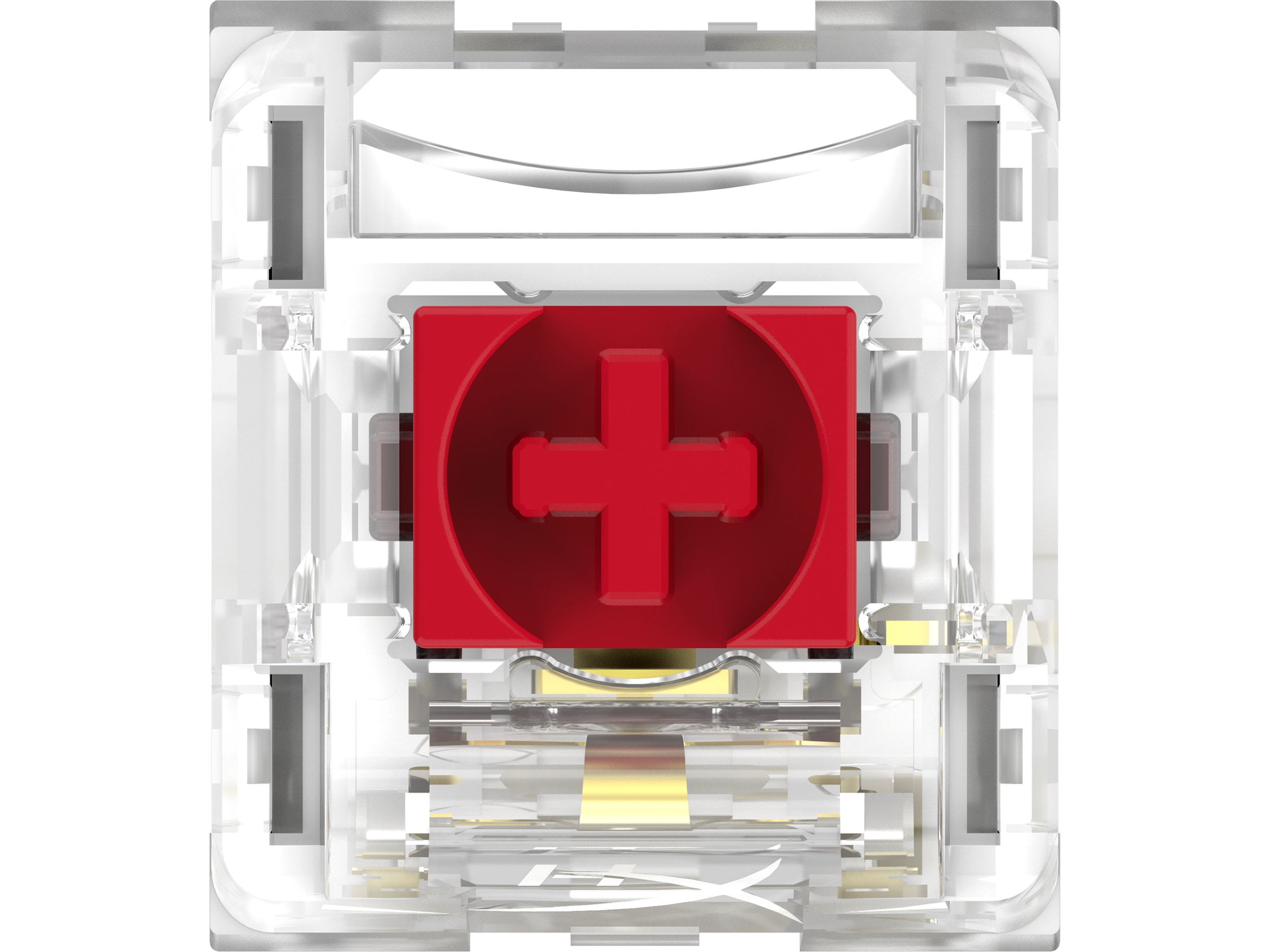 HyperX Linear Switches har en krystalklar polycarbonattop til belysning og er bygget på en robust nylonbase, der holder stamme, fjeder og blad på plads.