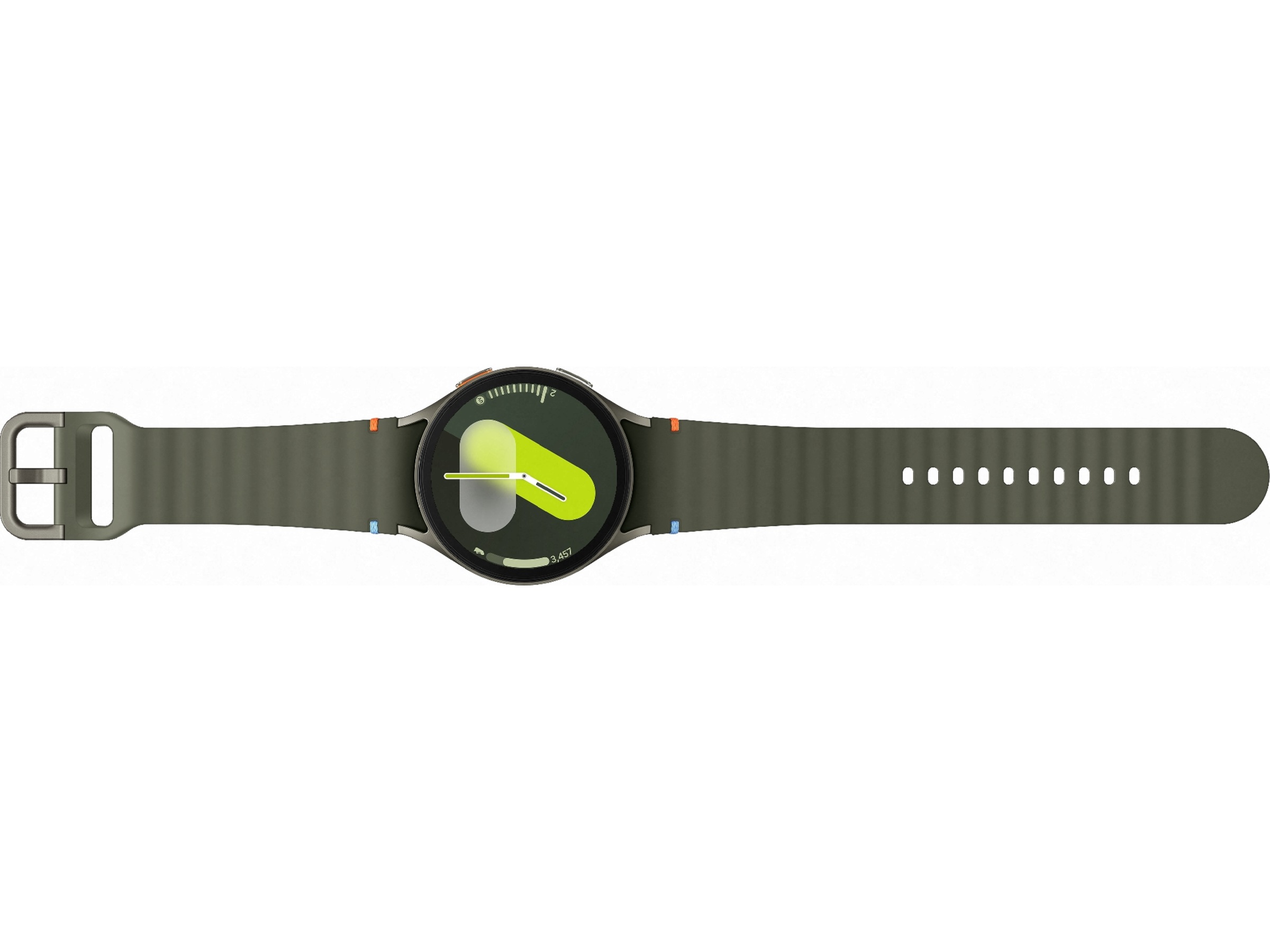 Løft din stil med Galaxy Watch7, der har et flydende glasdesign og farverige syninger. Fås i Small og Large med tre farvemuligheder: Grøn, sølv og creme.