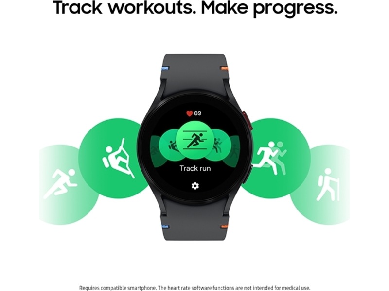 | Funktioner | Fald-detektion, Kropskompositions-måleværktøj, Fjernstyring til kamera, Emergency SOS, Hjertefrekvenszoner, Musikafspilningskontrol, Adaptiv træningsvejledning, Sleep Coaching |