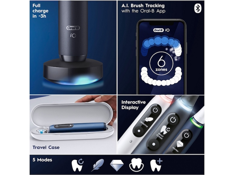 Udover de teknologiske fremskridt for at inkludere industrividenskab i verdensklasse, har vi også gjort det muligt for dig at nyde den mest præcise, skånsomme og stille tandbørstning. Ud over at designe et objekt, der vækker ægte interesse, har vi skabt et elegant udseende forbeholdt den mest eftertragtede teknologi. Selve rengøringen bliver selvfølgelig også bedre, når du opgraderer fra en manuel til en elektrisk tandbørste. Men når man går fra en elektrisk tandbørste til en iO, går man ud over det ordinære og til en virkelig ekstraordinær oplevelse, der både ser, lyder og føles anderledes.