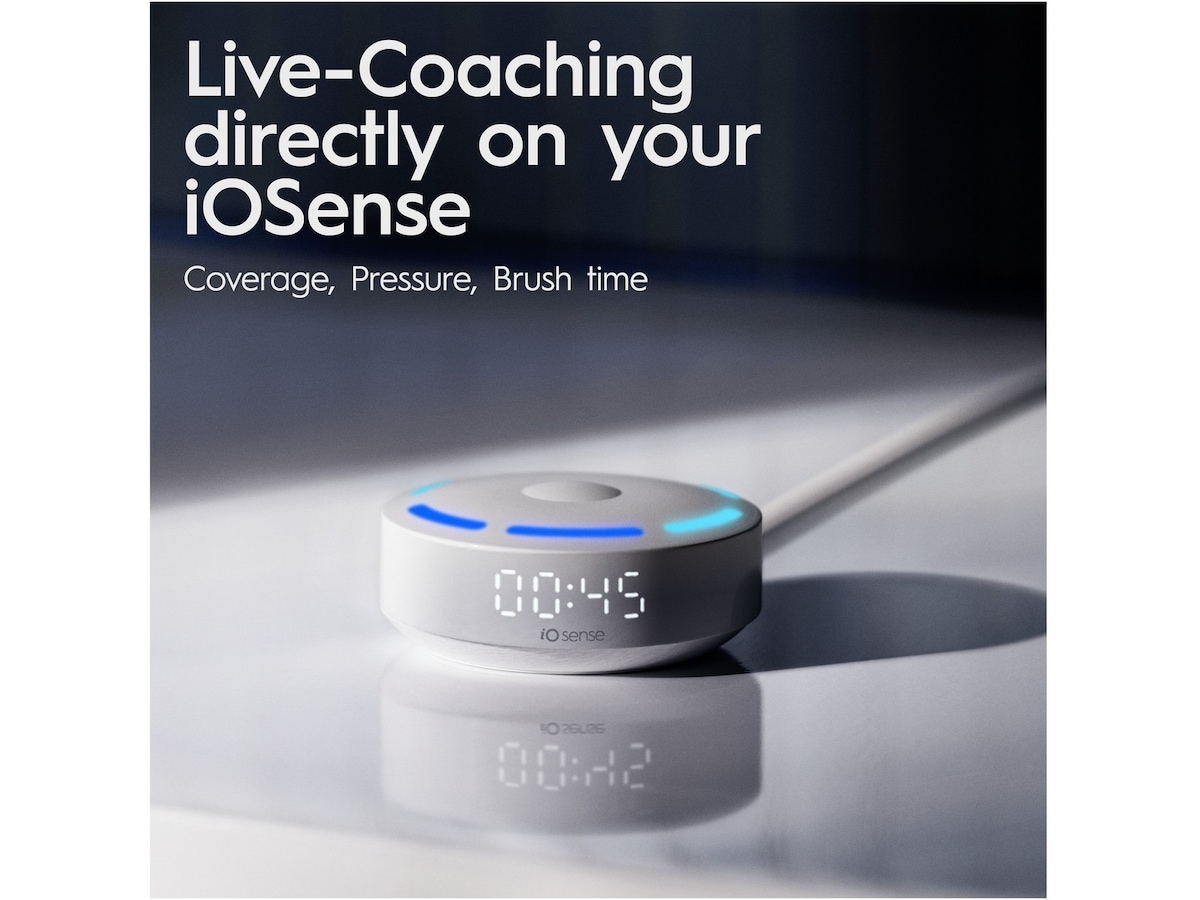 Få en individuelt tilpasset rengøring med iO sense: vejledning om børstetid og tryk direkte på opladeren uden at skulle åbne Oral-B-appen.