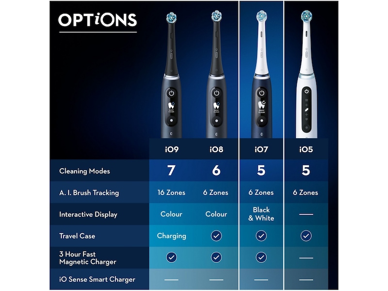 Udover de teknologiske fremskridt som inkluderer verdensklasse industrividenskab, har vi også gjort det muligt for dig at nyde den mest præcise, skånsomme og stille tandbørstning. Ud over at designe et objekt, der vækker ægte interesse, har vi skabt et elegant udseende reserveret til den mest eftertragtede teknologi. Selve rengøringen bliver selvfølgelig også bedre, når du opgraderer fra en manuel til en elektrisk tandbørste. Men når man går fra en elektrisk tandbørste til en iO, går man ud over det ordinære og til en virkelig ekstraordinær oplevelse, som både vil se, høre og føles anderledes.