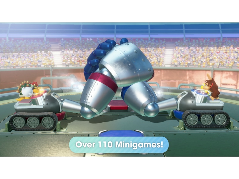 Udforsk fem nye spilleplader: Kør rulletrapperne i Rainbow Galleria, bliv på sporet i Roll 'em Raceway og varm spillet op med den aktive vulkan i Goomba Lagoon, for blot at nævne nogle få. To brætter fra tidligere Mario Party- spil vender også tilbage. Derudover er der over 110 minispil at spille, det hidtil største udvalg i Mario Party- serien. Oplev actionfyldte udfordringer, puslespil, der tester din forstand, og nogle minispil med bevægelseskontrol. Det er ikke alt, da op til 20 spillere kan gå head-to-head online* 1 i Koopathlon-tilstanden.