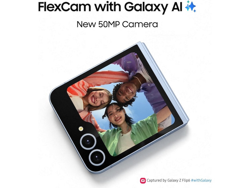 Dit selvudtryksværktøj, Galaxy Z Flip6, er mere kompakt og iøjnefaldende med Galaxy AI og et professionelt 50 MP-kamera, der er klar til fotografering.*