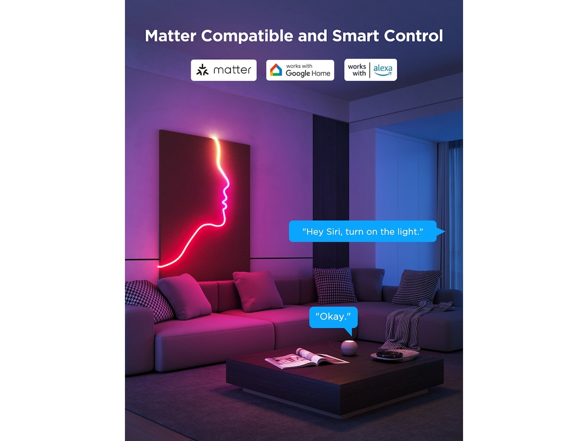 Juster ubesværet din belysning via Govee Home App, Matter, Alexa eller Google Assistant. Bemærk: Ingen 5G Wi-Fi-understøttelse.