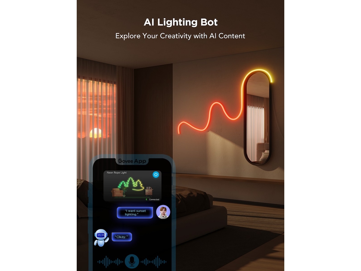 Denne nye generation af Govee neonlys inkorporerer tilpassede lyseffekter gennem Govee Home App.