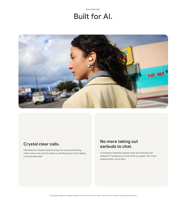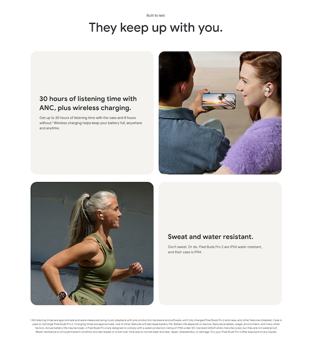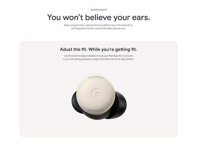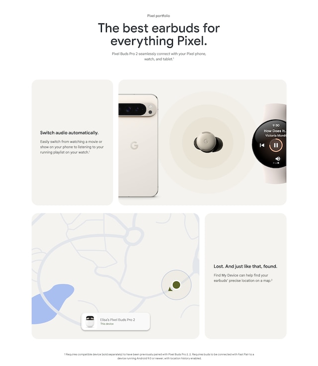 Sag højttaler til Find My Device, Tensor A1 processor, Aktiv i øret-trykaflastning, Vindblokerende netdække
