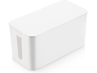 Kabelboksen passer perfekt på eller under skrivebordet, ved siden af computeren eller i nærheden af dine apparater. Du placerer simpelthen strømfordeleren inde i kassen uden selv at skulle afbryde strømmen. Sæt derefter alle længere kabler i kassen og luk låget. Sikker! Den har huller til kablerne på begge kortsider, så du ikke skal trække kablerne rundt i kassen. Denne kabelboks er velegnet til kabler og strømfordelere med maksimalt tre strømudtag. På undersiden har kabelboksen gummifødder, så den ikke glider rundt på gulvet.