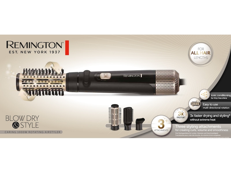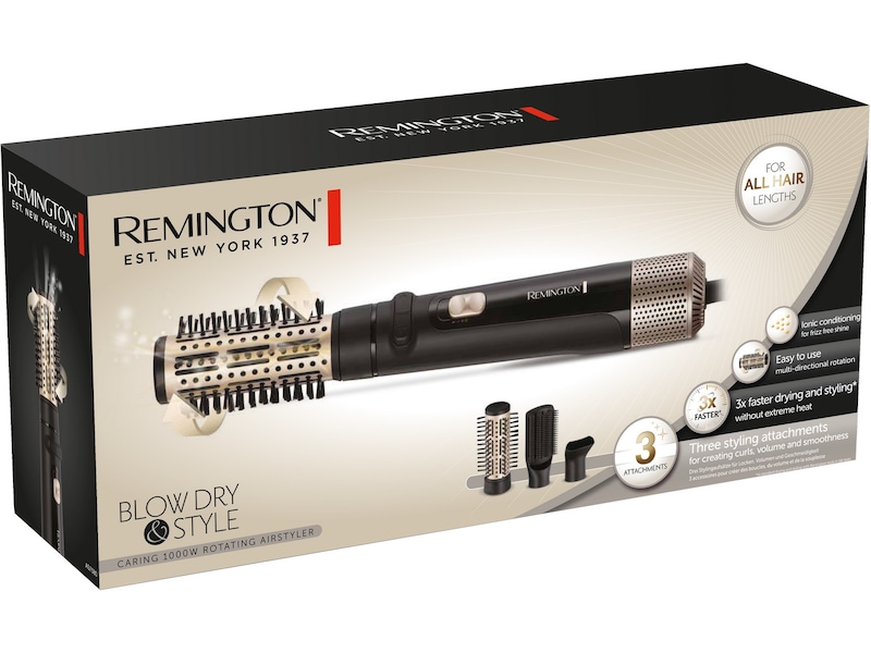 Remington Blow Dry and Style Caring 1000W Rotating Airstyler er din ideelle 'ettrins' stylingløsning derhjemme eller på farten.