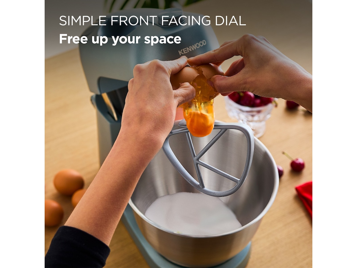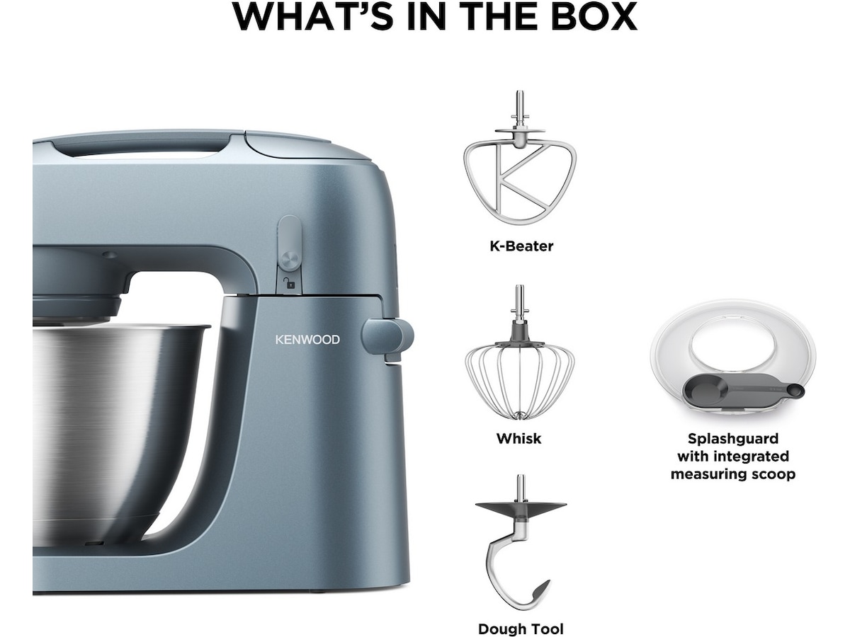 Tilføj Kenwoods innovative roterende stænkskærm med indbygget måleske og oplyste frontvendte betjeningselementer, kombineret med en langtidsholdbar metalkrop og elegant design, og du har en mægtig mixer i en lille pakke.