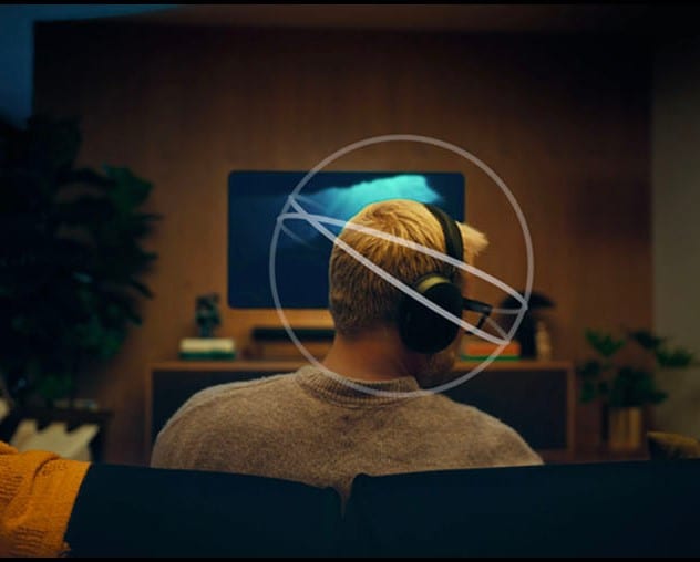 Swap nemt TV-lyd fra en kompatibel Sonos-soundbar til Sonos Ace, når du ikke vil forstyrre andre, og bliv omsluttet af levende surroundsound og rumlig lyd.⁶