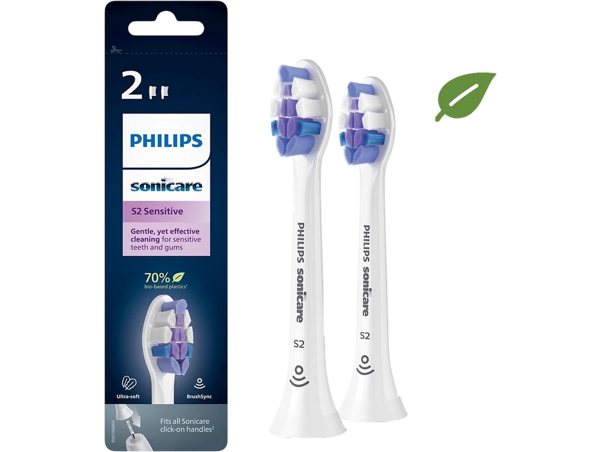 Med de tyndeste børstehår fra ethvert Sonicare-børstehoved (0,1 mm) leverer S2 Sensitive en blid, men effektiv børsteoplevelse.