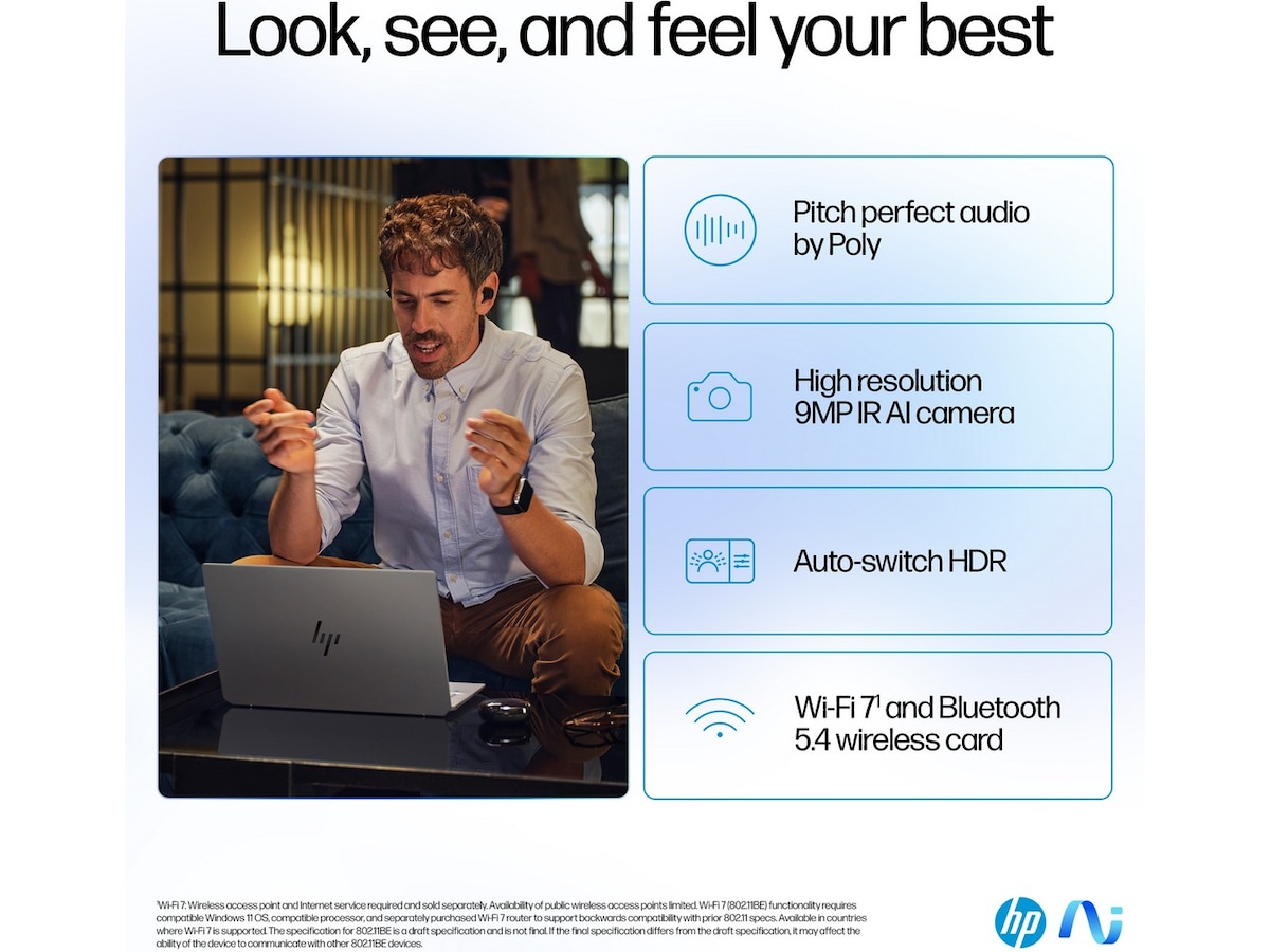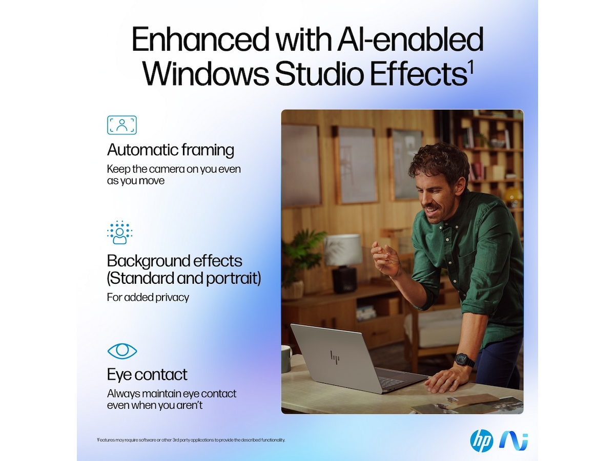 Oplev nemt samarbejde med et 9 MP kamera, Poly Camera Pro-app, Wi-Fi 7 og Windows Studio Effects.