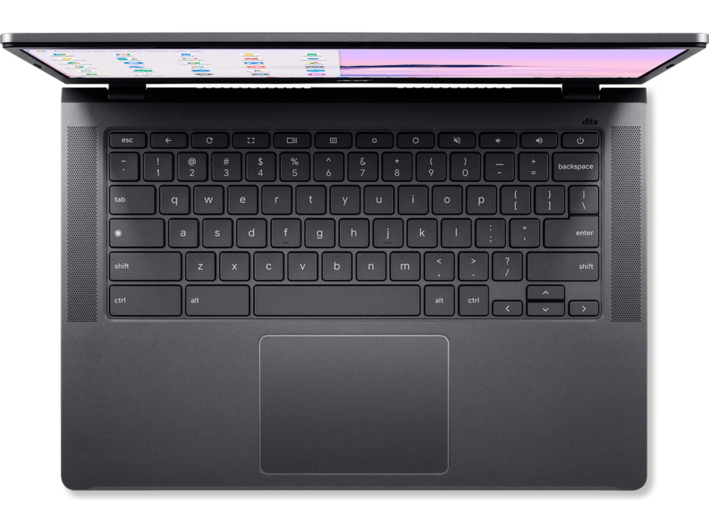DTS®-lyd og hurtigopladnings-batteri med 9,5 timers batterilevetid gør denne Chromebook Plus fantastisk til underholdning på farten. Tag den med stort set alle steder uden at skulle bruge oplader, mens du nyder lyd i høj kvalitet fra de to opadvendte højttalere.