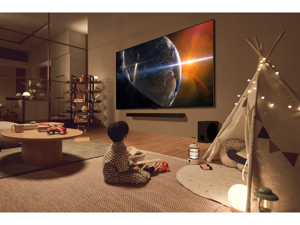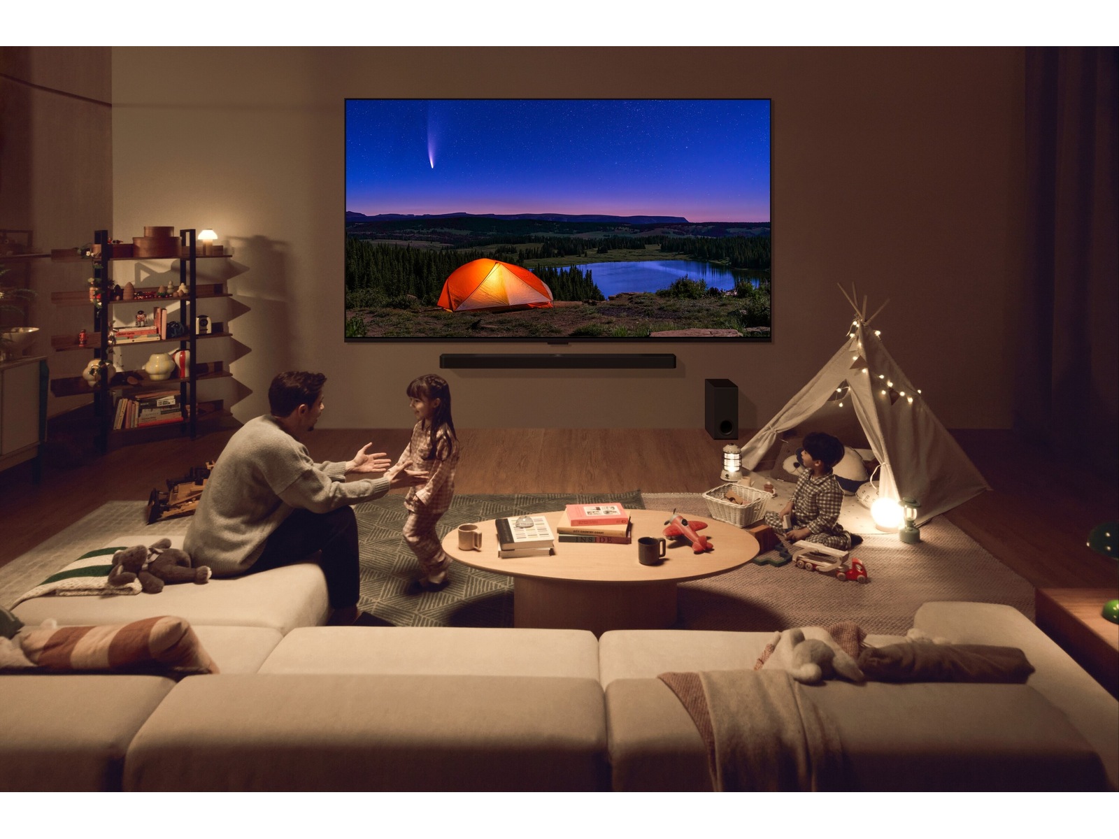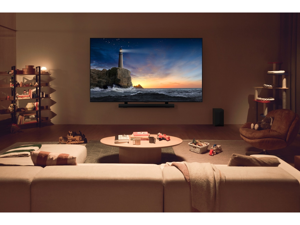 Magisk fjernstyring, Intelligent voice recognition, Smartphone fjernstyret, AI Genre Selection, Apple AirPlay 2 support, Freesync, USB-webcamsupport, Boosteroid, Game Dashboard, Always Ready, 4K High Frame Rate (HFR), AI Brightness Control, Family Settings |
